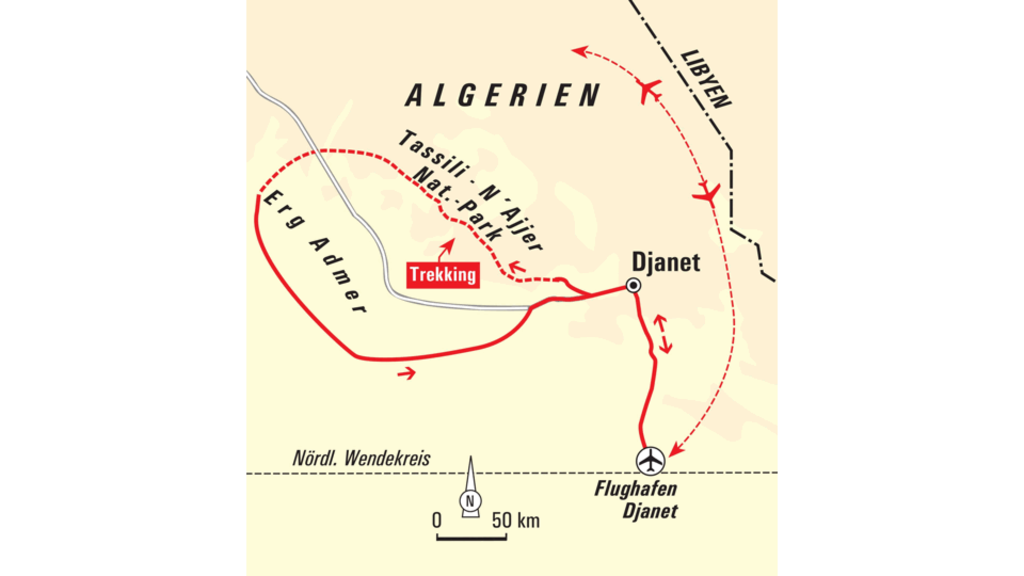 - Linienflug mit Air Algerie (Economy, Tarifklasse Q) von Frankfurt nach Djanet und zurück, nach Verfügbarkeit