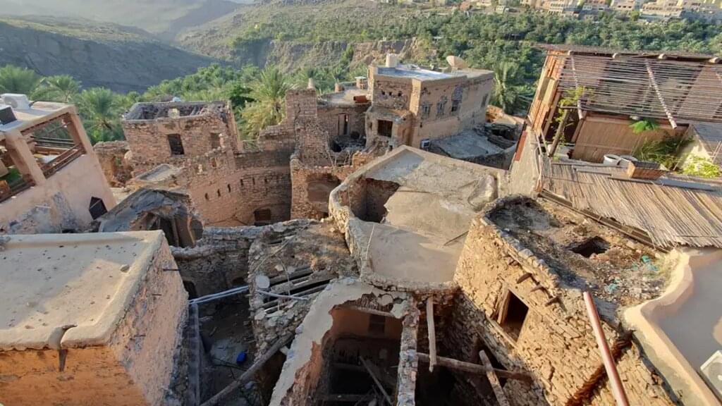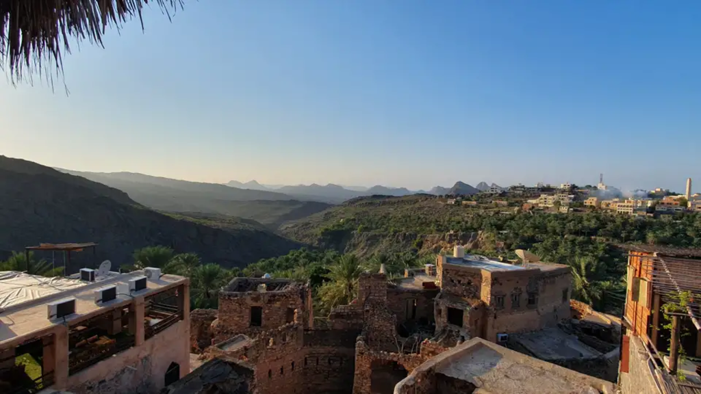 <Am Morgen fahren wir eine kurze Strecke nach Bait Bimah, von wo wir das Wadi aufwärts wandern und eine kleine Siedlung erreichen. An Palmengärten vorbei folgen wir einem schmalen Pfad und erreichen das malerisch, auf etwa 1.000 Meter gelegene Dorf Balad Sit, in dem wir übernachtet haben. Wir erreichen unsere Mannschaft mit den Fahrzeugen und fahren in den etwa 400 Jahre alten Ort Al Hamra und besuchen das von einer Familie betriebene Volkskundemuseum Bait Al Safah. In diesem alten Lehmhaus, ganz traditionell im omanisch-arabischen Stil eingerichtet, bekommen wir einen guten Einblick in die einstige Lebensweise. Unser weiteres Ziel ist Misfat Al Abreyeen, ein "Garten Eden". Das Dorf wird in traditioneller Weise renoviert und erhalten. Wir übernachten in einem der alten Häuser des Dorfes. -