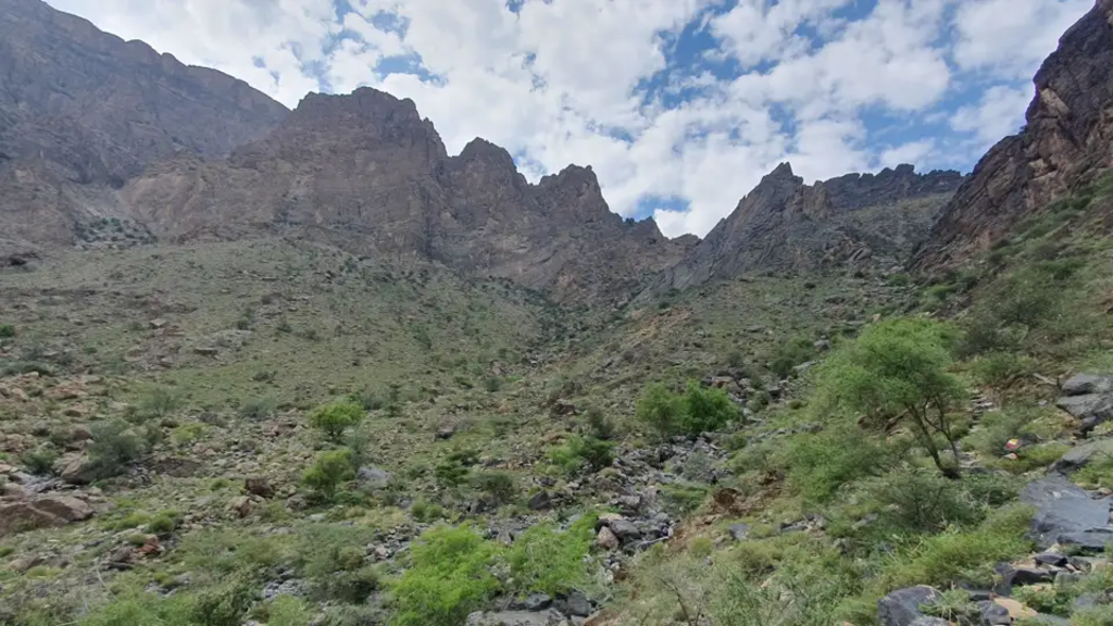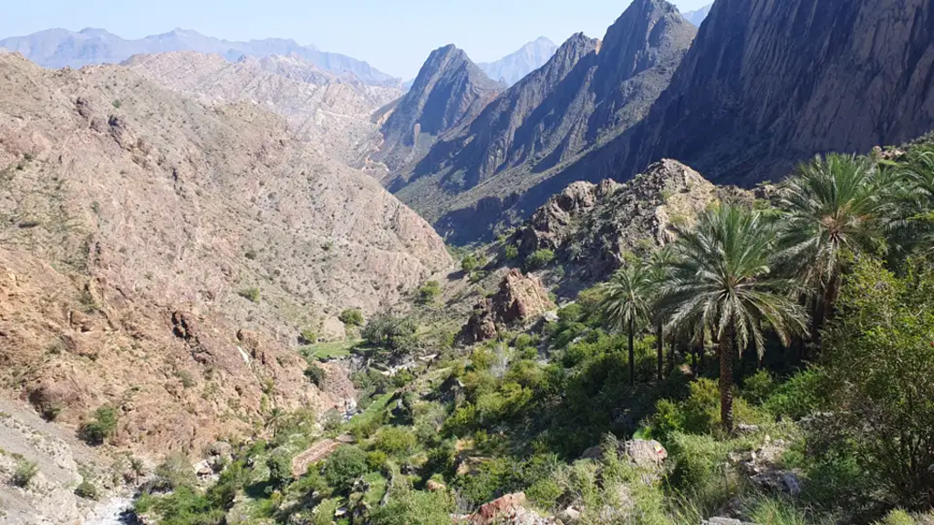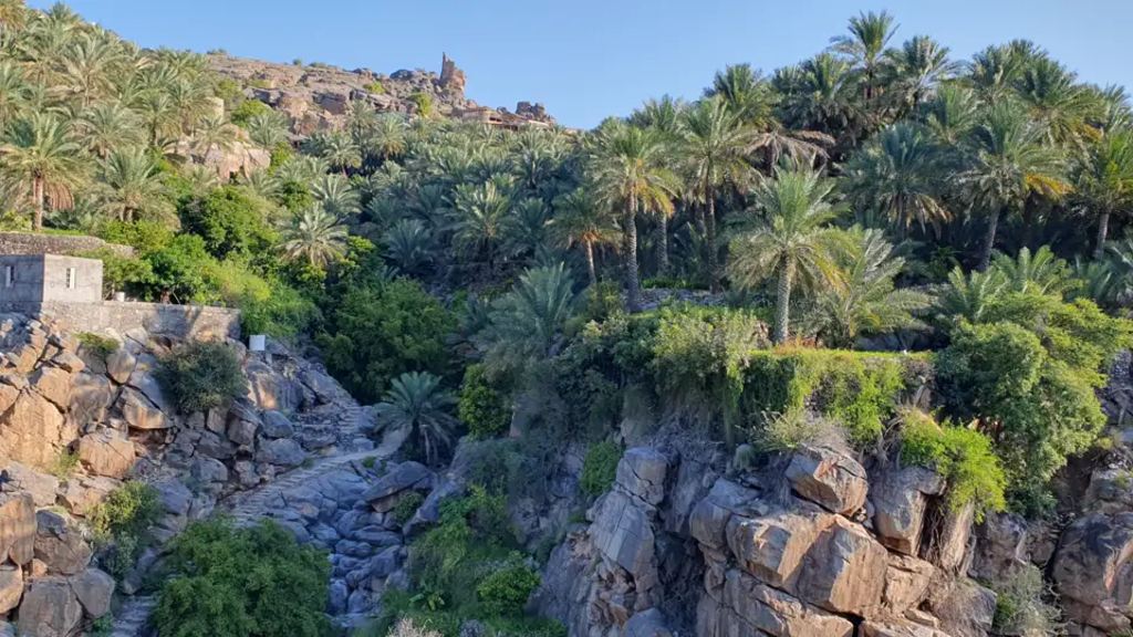 <Von unserem Zeltplatz aus beginnen wir unsere Wanderung und durchqueren dabei verschiedene Täler, jedes mit seinem eigenen Charme. Vorbei an Palmenhainen, Terrassenfeldern und den jahrtausendealten Falaj-Bewässerungskanälen, erreichen wir am Nachmittag unsere Begleitmannschaft mit den Fahrzeugen. Wir fahren nach Balad Sit, ein auf 1.000 Meter Höhe gelegenes Dorf, welches seinen traditionellen Charme und das Gefühl der ländlichen Einsamkeit beibehalten hat. -