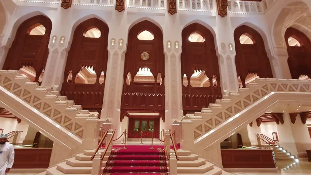 <Wir landen in Maskat und werden am Flughafen in Empfang genommen. Auf dem Weg zum Hotel besuchen wir die Sultan-Qabus-Moschee, die größte Moschee des Landes. Prunkstücke sind ein imposanter, acht Tonnen schwerer Kristallleuchter und ein riesiger Perserteppich, der als Meisterwerk iranischer Teppichknüpfkunst gilt. (Für die Damen: Unbedingt lange Ärmel, lange Hosen bis über die Knöchel sowie ein die Haare bedeckendes Kopftuch tragen, für Herren: Lange Hose). Anschließend sehen wir noch die Oper von Maskat. Danach Fahrt in unser Hotel, wo wir die Möglichkeit haben, uns ein wenig vom Nachtflug zu erholen, bevor es in die Altstadt geht.Während eines kurzen Spaziergangs schlendern wir am Al-Alam Palast sowie an der Marani-Festung vorbei. -