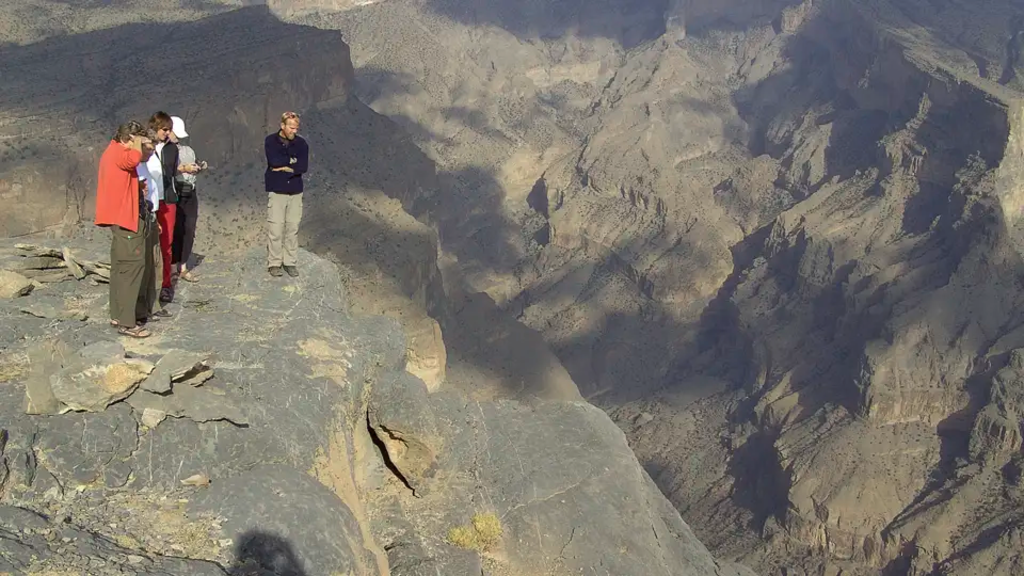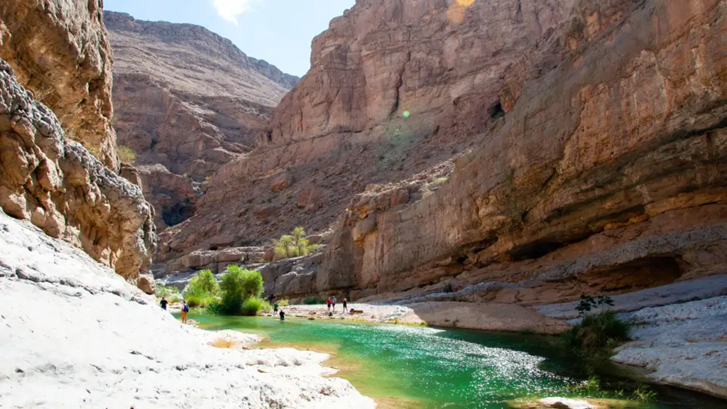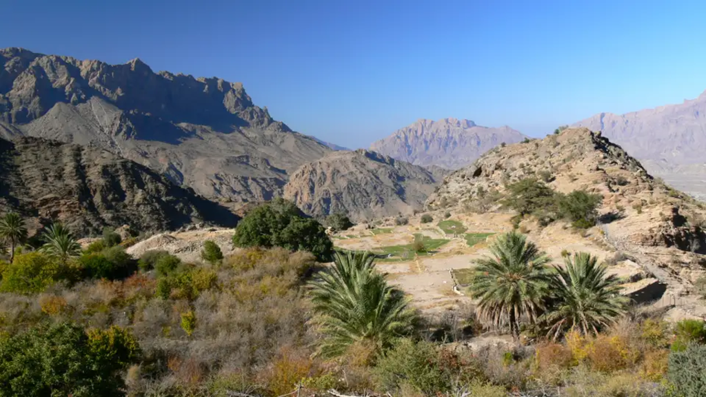 <Nach dem Frühstück führt uns unsere Fahrt in die Täler der majestätischen Berge. Durchfurchte Hänge und geheimnisvolle Höhlen, atemberaubende Steilwände, schroffe Felsüberhänge und tiefe Schluchten präsentieren sich in einem nicht beschreibbaren Farbenspiel. Mit einer unglaublichen Vielfalt an Naturwundern zieht sich das Gebirge über eine Länge von fast 500 Kilometern durch das Sultanat. Es schiebt eine bis zu 3.000 Meter hohe Barriere zwischen den Golf von Oman und die Wüstenlandschaften im Innern des Landes.Wir starten unsere Wanderung in Bimah, einer Siedlung, in der die Häuser überwiegend in traditioneller Steinbauweise erbaut sind. Von hier gelangen wir nach Selma und durch eine enge Schlucht, in der entlang der Felswände die Palmengärten aus Dattelpalmen, Mangobäumen und Bananenstauden angelegt sind, erreichen wir Balad Sit. -