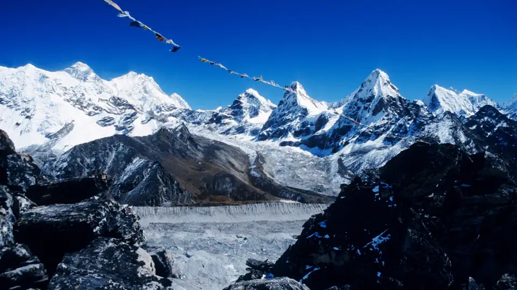 Trekkingreise auf einem tibetischen Handelsweg durch das Tal des Bhote Koshi hinauf zum Renjo La, nach Gokyo und zum Ngozumpa TseDie Fülle an Gebetsfahnen über uns ist der erste Hinweis. Schließlich führt auch der Pfad nicht mehr weiter hinauf – es ist geschafft! Wir befinden uns am Pass Renjo La und blicken auf die Giganten der Welt: Mount Everest, Lhotse und Makalu. Davor wälzt sich der fast komplett von Geröll bedeckte Ngozumpa-Gletscher ins Tal und der türkisfarbene Gokyo-See sorgt im Panorama für den außergewöhnlichen Farbtupfer. Ein Bild, das für immer im Gedächtnis bleibt. Aber nicht nur die Bergriesen, auch die kleinen Dinge werden in Nepal zu großen Erinnerungen. Wir trekken von Lukla aus durch das Sherpa-Land, wandern über breite Terrassenfelder und durch malerische Dörfer bis nach Namche Bazar im Zentrum der Khumbu-Region. Wir halten stets Ausschau nach wilden Bergziegen, verschaffen uns vom Ngozumpa Tse eine vielen Trekkern verborgen bleibende Perspektive auf die freie Südseite des Cho Oyu und schauen zottelige Yaks beim Grasen auf den Weiden im Bhote Koshi-Tal zu. Dieses Tal bildet den immer noch aktiven Handelsweg nach Tibet, so dass wir gute Chancen haben einer tibetischen Yakkarawane zu begegnen. In den Dörfern und Lodges trinken wir Tee mit den Einheimischen und erhalten Einblicke in die buddhistisch geprägte Kultur der Region. Immer wieder entdecken wir auch kleine Klöster entlang des Weges und mit etwas Glück erleben wir eine Gebetszeremonie der Mönche in Thame. Durch das idyllische Gokyo-Tal mit seinen türkisfarbenen Seen geht es wieder in niedrigere Gefilde. Zurück in Kathmandu mischen wir uns unter das Volk, stürzen uns nach der Ruhe in den Bergen in das lebhafte Treiben auf den Plätzen und bewundern die bunten Farben der Heiligtümer des Kathmandu-Tals. Das Panorama am Renjo La noch immer vor Augen.