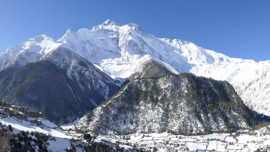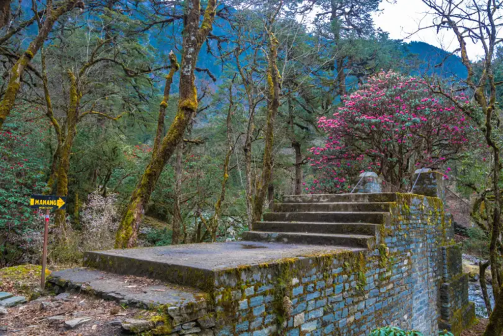 <Wir halten uns zuerst noch auf der rechten Talseite und wandern über Charting weiter. Wieder am linken Flussufer geht es durch lichten Fichten- und Föhrenwald bergan. Wenn wir aus dem engen Tal zum Ort Pisang (3.300 m) hinaufgehen, eröffnet sich eine herrliche Aussicht auf die imposante Gipfelsilhouette der Annapurna II und den Pisang Peak (6.091 m). Nachmittags können wir im Ortsteil Upper Pisang das buddhistische Kloster besuchen. Dort stehen wir der Annapurna direkt gegenüber – ein fantastischer Blick! -