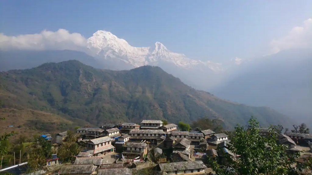 <Über den Khare-Pass (1.700 m) fahren wir ins Tal des Modi Khola über Nayapul zum Ausgangspunkt unseres Trekkings in Kimche. Im kleinen Ort essen wir zu Mittag und wandern dann die erste Trekkingetappe teils über Natursteintreppen aufwärts nach Ghandrung (1.940 m). Der große Gurung-Ort gilt immer noch als das schönste Dorf im Modi Khola-Tal. Der Rest des Tages steht für Erkundungen im weitläufigen Dorf zur Verfügung. Im alten Kern des Dorfes befindet sich das Hauptbüro des Annapurna Conservation Area Project mit einem kleinen Museum und interessanten Informationen zur Annapurna-Region. -
