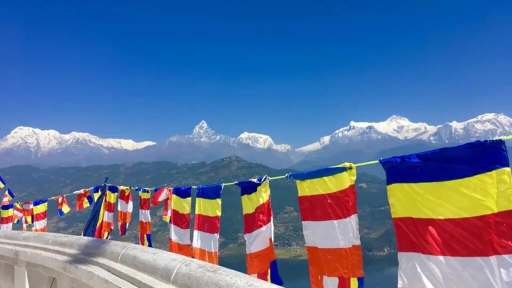 <Wir deponieren nicht benötigte Kleidung und Gepäckstücke im Hotel und machen uns mit dem Bus auf den Weg nach Pokhara. Unterwegs erhalten wir schon viele Eindrücke von Land und Leuten. In Pokhara beziehen wir erneut unser Quartier in einem Hotel. Den Nachmittag verbringen wir nach Lust und Laune. Lohnenswert ist ein Bummel entlang der vielen Souvenir- und Trekkingläden zu den Gartencafés am Seeufer. Vom Ufer bietet sich bei klarem Wetter ein imposanter Blick auf die Achttausender-Massive Dhaulagiri und Annapurna mit dem "Fischschwanz" Machhapuchare. -
