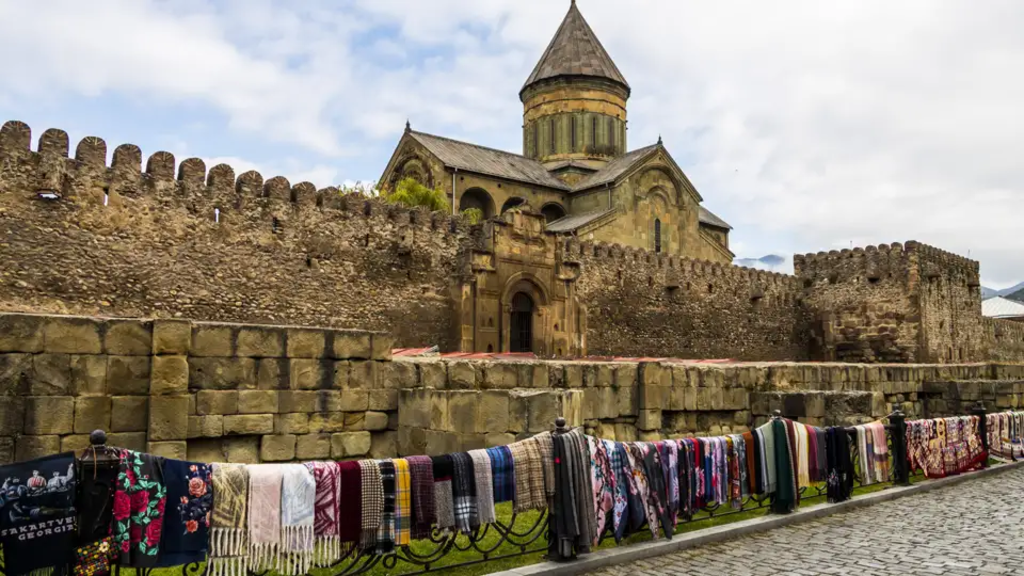 <Über die Hügelketten des Gombori-Gebirges fahren wir nach Telawi, der Hauptstadt der Region Kachetien. Dort besichtigen wir das Alawerdi-Kloster. In Wardisubani, nordwestlich des Stadtkerns von Telawi, besuchen wir einen Kwewri-Töpfer. Die Herstellung der georgischen Weinamphoren ist eine ganz besondere Kunst, die nur noch von ganz wenigen Meistern beherrscht wird. Nach einem kleinen Mittagessen geht es auf den traditionellen Bauernmarkt von Telawi und zur historischen Fürstenresidenz Zinandali. -