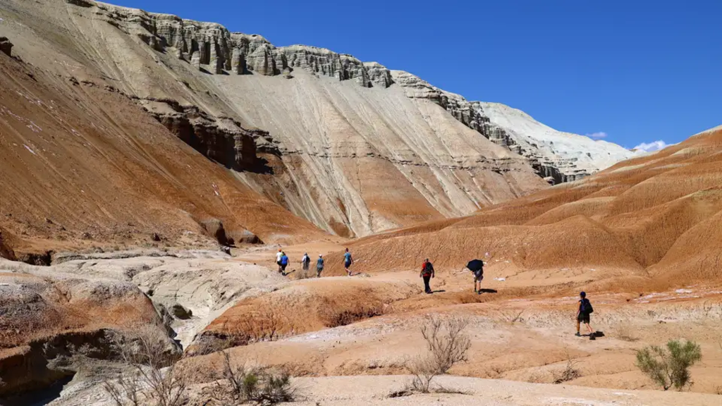 <Heute fahren wir nach Basshi in den Altyn-Emel-Nationalpark. Der 1996 gegründete Nationalpark ist der größte Kasachstans und reicht entlang des Flusses Ile bis an die Qapschaghai-Talsperre. Auf dem Weg bekommen wir einen ersten Eindruck der außergewöhnlichen Landschaft und der verschiedenen Gesteinsformen des Nationalparks. Im Dorf Basshi, in dem auch die Nationalparkverwaltung liegt, beziehen wir unsere Unterkunft. -