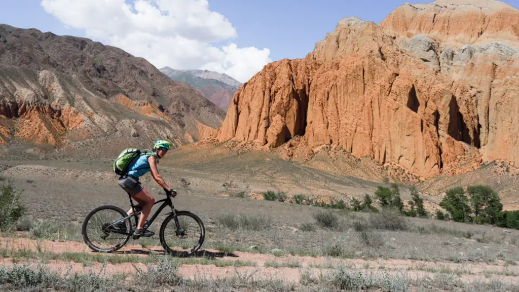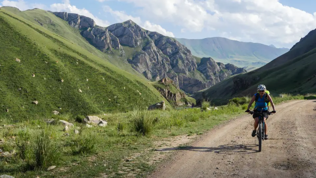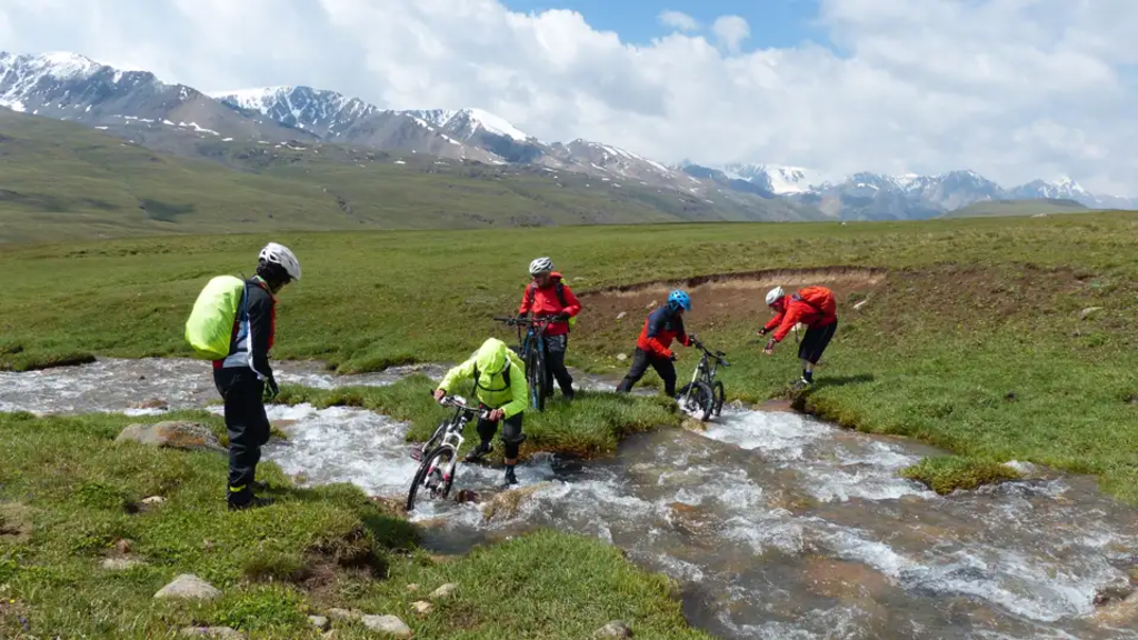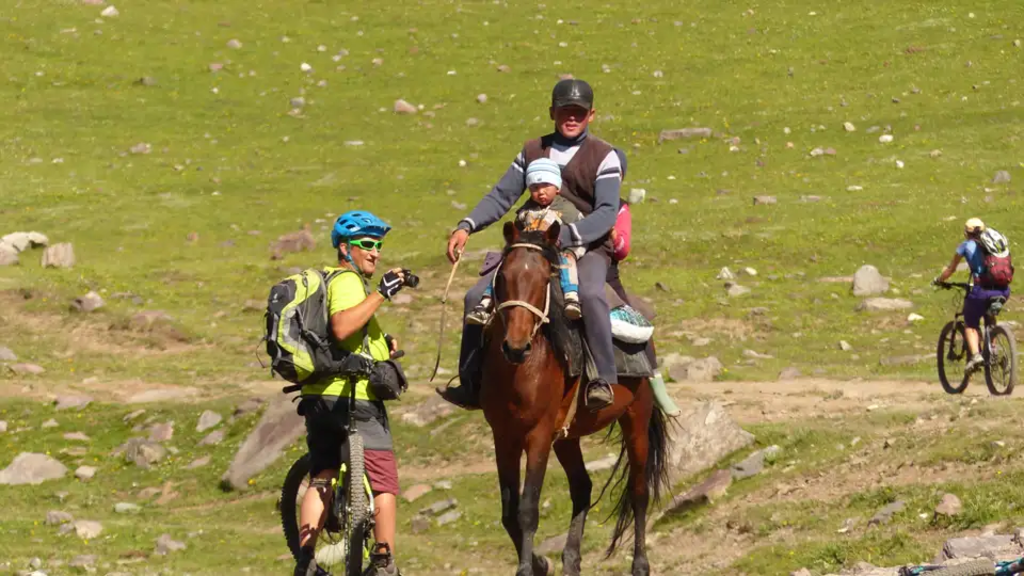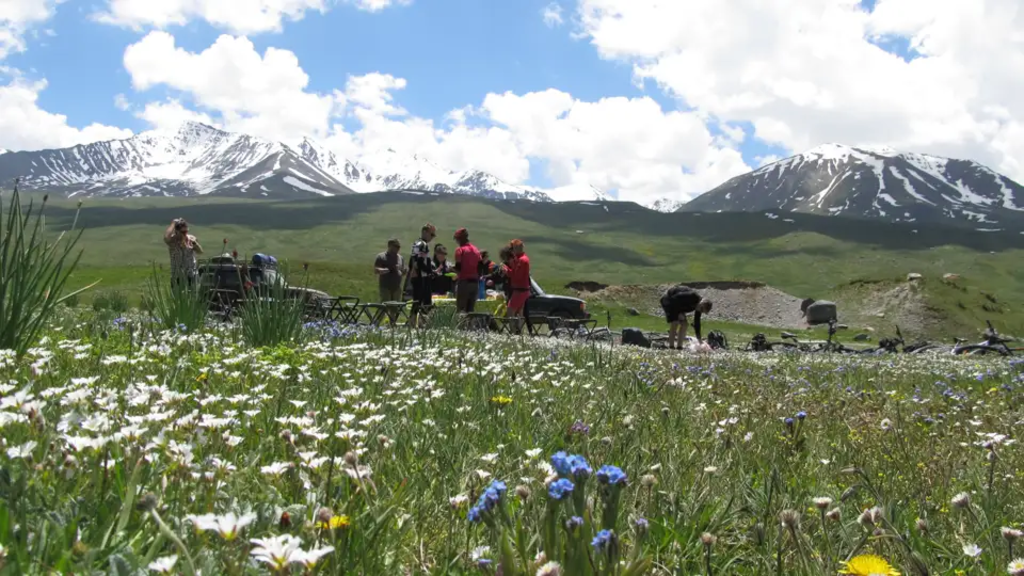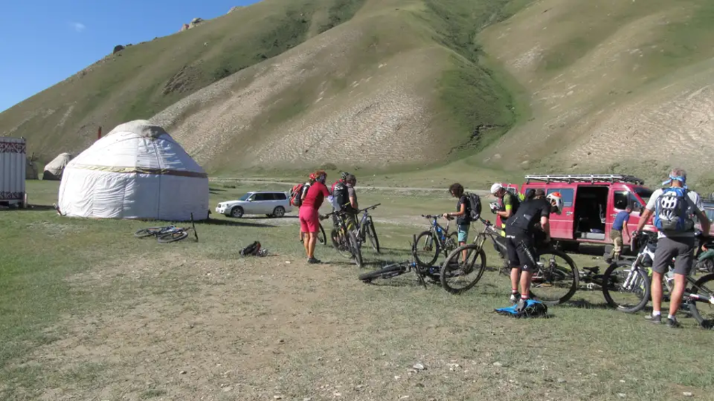 <Nach dem Frühstück beginnt unsere erste Bike-Etappe und führt uns die Straße entlang Richtung Karakolpass (3485 m). Die Karakolschlucht ist eine sehr schöne und malerische Region mit unterschiedlicher Flora. Wir fahren größtenteils auf Schotterwegen. Inmitten dieser markanten Landschaft werden wir bei einer Mittagsrast mit Kaffee, Tee, frischen Früchten und einer kleinen Mahlzeit versorgt. Am Ende unserer Etappe errichten wir unsere Zelte und genießen den Tagesausklang umrahmt von vier- bis fünftausend Meter hohen Gipfeln. -