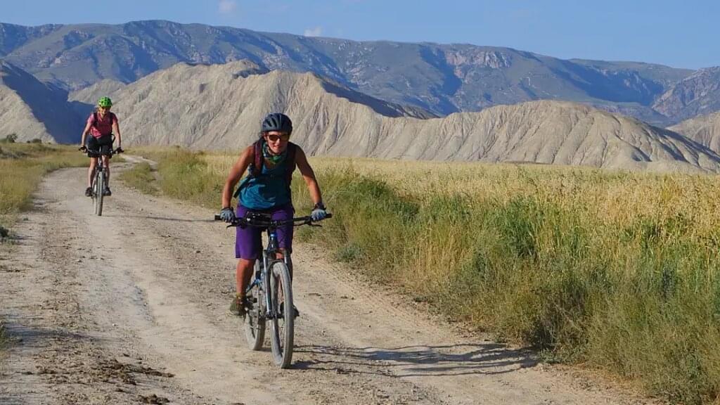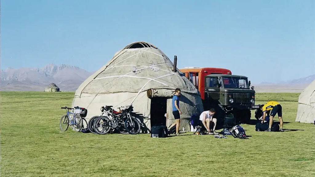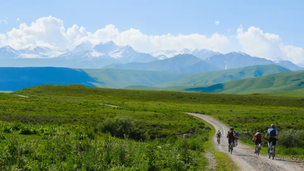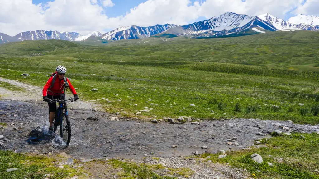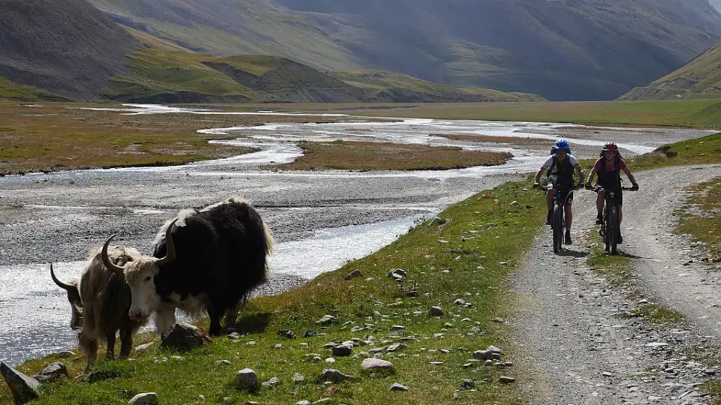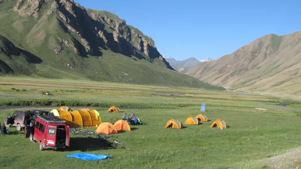 <Nach dem Frühstück beginnt unsere erste Bike-Etappe und führt uns die Straße entlang Richtung Karakolpass (3485 m). Die Karakolschlucht ist eine sehr schöne und malerische Region mit unterschiedlicher Flora. Wir fahren größtenteils auf Schotterwegen. Inmitten dieser markanten Landschaft werden wir bei einer Mittagsrast mit Kaffee, Tee, frischen Früchten und einer kleinen Mahlzeit versorgt. Am Ende unserer Etappe errichten wir unsere Zelte und genießen den Tagesausklang umrahmt von vier- bis fünftausend Meter hohen Gipfeln. -