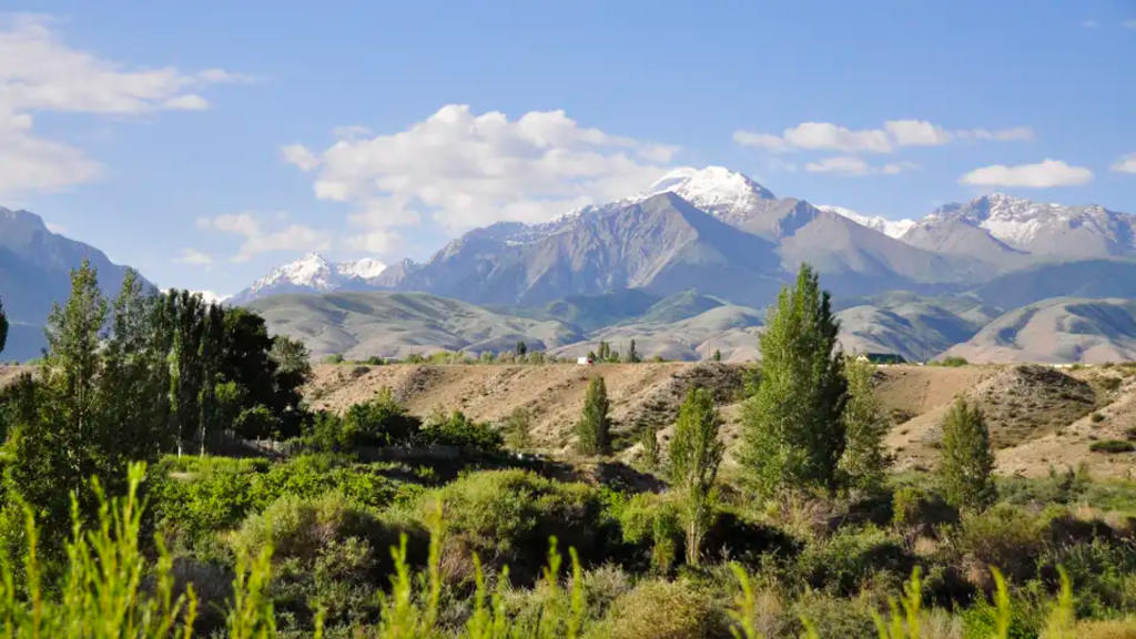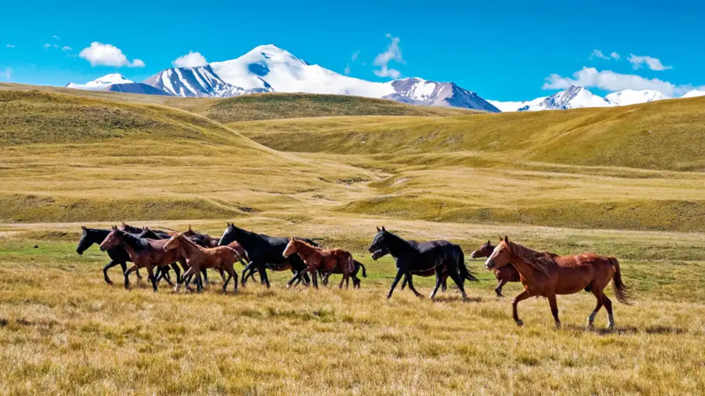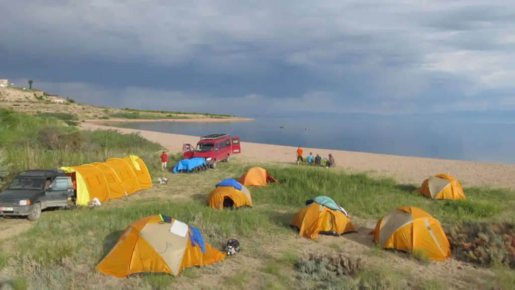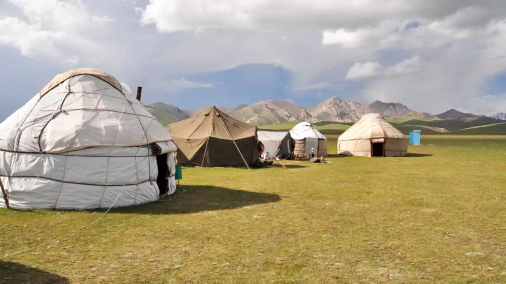 <Wir starten heute sehr früh und verlassen die Stadt mit dem Fahrzeug. Die Strecke führt entlang von Feldern und Flüssen und bei gutem Wetter erblicken wir bereits die schneebedeckten Berge des Tien-Shan. Nach rund 2 Stunden erreichen wir Burana. Der Turm aus dem 10. Jh. ist eines der ältesten Bauwerke Zentralasiens und heute ein Museum, das dem Karakhaniden Khanat gewidmet ist. Auf einer Wendeltreppe gelangt man auf den rund 26 m hohen Turm mit einem schönen Ausblick. Die Weiterfahrt führt durch eine kleine Dörfer bis zu unserem Übernachtungsplatz auf rund 1.700 m Höhe. -