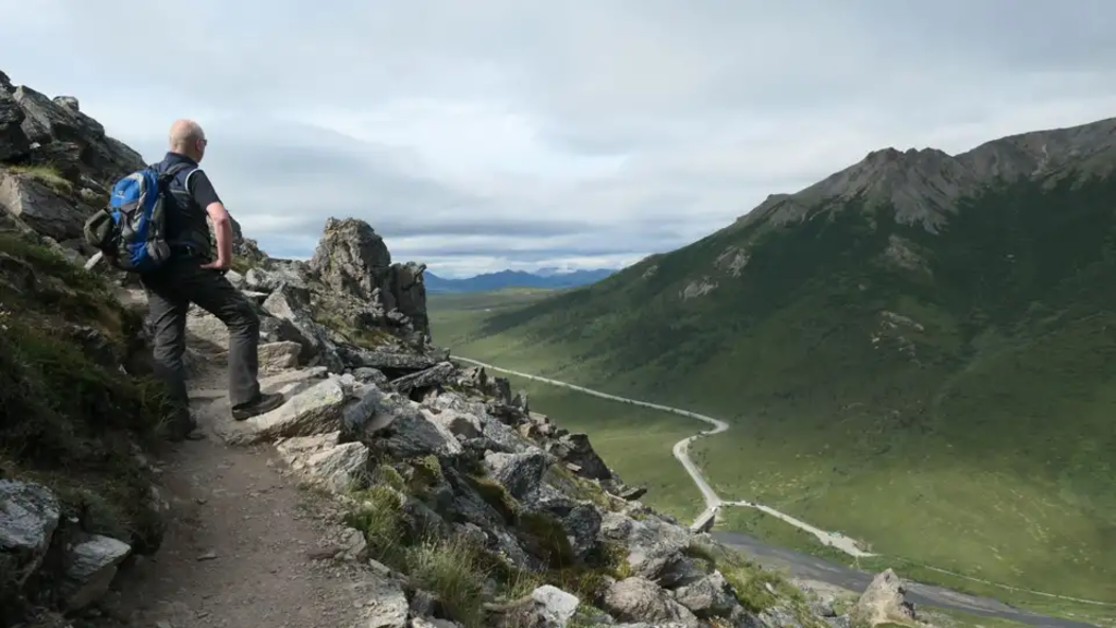 <Wir verlassen den Denali Highway und folgen dem gleichnamigen Highway, einer 200 km langen Wildnispiste, die zu den landschaftlich eindrucksvollsten Straßen Alaskas gehört. Sie führt uns durch eine wilde unberührte Gebirgswelt mit fantastischen Blicken auf die schneebedeckten Gipfel der Alaska Range. Zahlreiche Seen und Gletscherflüsse prägen die Landschaft und bilden einen optimalen Lebensraum für Biber, die hier zahlreiche Dämme bauen. Elche und Karibus sind oftmals in den Ebenen zu erspähen. Vielen verschiedenen Zugvögeln (Seeschwalben, Eistaucher, Kraniche, Gänse, Schwäne etc.) dient diese Region während der Sommermonate als Nist- und Brutplatz. Bei frühzeitiger Ankunft besteht die Möglichkeit für eine Wanderung in dieser einzigartigen Wildnis. Wir begeben uns auf den McLaren Summit Trail und können eindrucksvolle Blicke auf die Alaska Range genießen. -