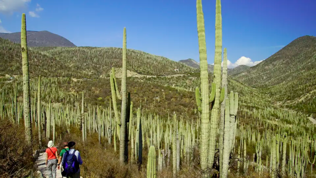 <Weiter führt uns die Reise nach Oaxaca. Unterwegs machen wir einen Stopp im Kakteenwald von Zapotitlán, wo wir riesige Elefantenfußbäume entdecken. Nach einem Besuch im botanischen Garten wandern wir über einen kleinen Hügel zu den Salinas, den traditionellen Salzgewinnungsanlagen, wo unser Fahrzeug bereits auf uns wartet. Im Restaurant Itandehui erwartet uns ein kleiner Kochkurs: Gemeinsam mit dem Küchenchef bereiten wir aus lokalen Zutaten – insbesondere aus der Kakteenfrucht – ein schmackhaftes Mittagessen zu. Anschließend setzen wir unsere Fahrt fort und erreichen am Abend, nach der Überquerung der Höhenzüge der Sierra Madre, unser Hotel in Oaxaca. -