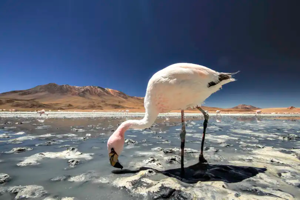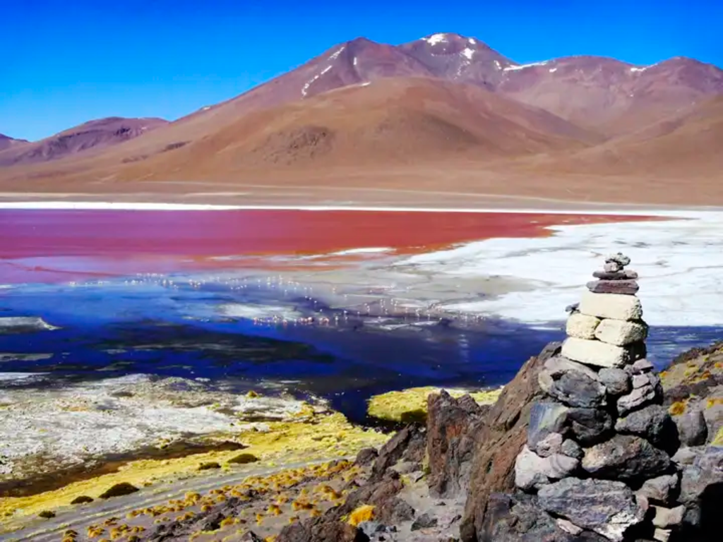 <Zunächst besuchen wir heute den kleinen Ort Toconaco und unternehmen einen Abstecher zum traumhaften Jerez Canyon, einer grünen Oase inmitten staubiger Steinwüste. Anschließend fahren wir auf den Salar de Atacama um die Lagune Chaxa zu besuchen. Hier rasten verschiedene Flamingoarten und andere Wasservögel. Danach geht es weiter zu den fantastisch gelegenen Lagunen Miscanti und Miniques (4.100 m - 4.350 m). Sie liegen am Fuße des 5.910 m hohen Vulkans Miniques. Mit ihren weißen Mineralkrusten, den Gelbtönen der Vegetation und dem dunklen Wasser bilden sie ein wunderbares Fotomotiv. Die Reihenfolge der Ausflüge unsers heutigen Tages kann sich gegebenenfalls aus organisatorischen Gründen ändern. Abends fahren wir zurück zu unserem Hotel in San Pedro de Atacama. -
