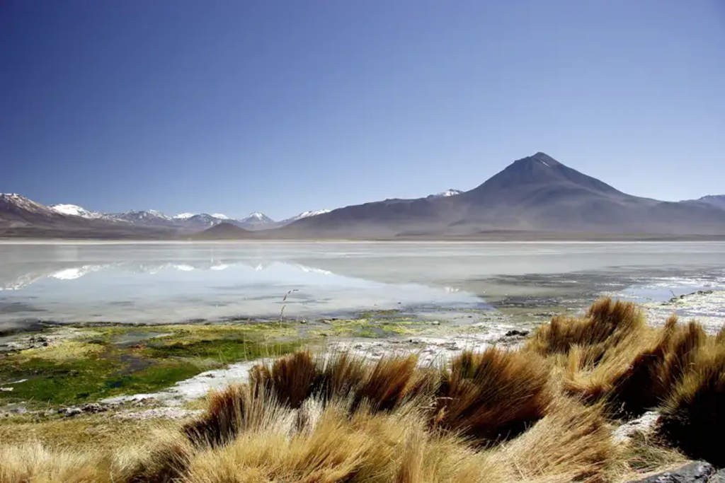 <Bei einem Tagesausflug entdecken wir den riesigen Salar de Atacama im Süden. Unser erster Stopp ist das verschlafene Dorf Toconao mit seiner malerischen Kolonialkirche. Hier wird noch handgemachtes Kunsthandwerk verkauft und viele der Einwohner leben mitten in der Wüste vom Obstanbau. Wir besuchen den grünen Jerez Canyon westlich vom Dorf, wo die fruchtbaren Gärten gepflegt werden und ein Gebirgsbach Abkühlung spendet. Von hier fahren wir auf holprigen Straßen mitten auf den Atacama Salzsee, um die Laguna Chaxa im Reservat Las Flamingos zu besuchen. Die namensgebenden Vögel finden in dem schimmernden Wasser ihre natürliche Futterquelle und können aus nächster Nähe beobachtet werden. Unsere Fahrt bringt uns weiter hinauf zu den Hochlandlagunen Miscanti und Miñiques. Auf 4.200 m Höhe schlendern wir geruhsam von einem See zum anderen und können, um den perfekten Blick auf das dunkle Wasser, die weißen Mineralablagerungen, die gelbliche Pflanzenwelt und die schneebedeckten Vulkane im Hintergrund einzufangen. -