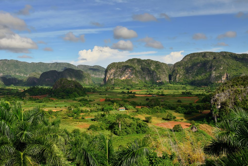<Das Naturschutzgebiet von Mil Cumbres zählt zu den ältesten geologischen Formationen in Cuba. Unsere Wanderung führt uns nahe dem imposanten Berg "Pan de Guajaibón", höchste Erhebung im Westen Kubas mit 701 Meter, durch eine fantastische Landschaft, durchzogen von Flussläufen. Von einem Aussichtspunkt blicken wir weit nach Westen auf die umliegenden Mogotes (Kalkkegel) sowie nach Norden bis in die Bucht von Bahía Honda. Das Mittagspicknick nehmen wir im Dorf San Juan de Sagua ein und bekommen somit interessante Einblicke in das ländliche Leben Kubas. Am Nachmittag fahren wir zurück nach Viñales.