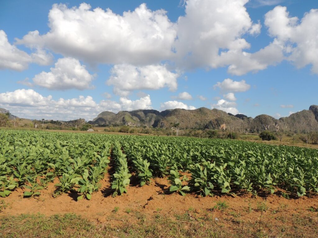 <Nach dem Frühstück unternehmen wir eine Wanderung im schönen Viñales-Tal mit einem lokalen Führer. In dieser Gegend wächst der weltbeste Tabak zwischen den malerischen Mogotes. Wir erfahren allerlei Wissenswertes über die Geschichte, Anbau und Ernte. Anschließend essen wir in einem Restaurant im Valle de las Dos Hermanas mit blick auf El Mural de la Prehistoria zu Mittag und fahren wieder in die Landeshauptstadt Havanna zurück. Sollte sich die Gelegenheit ergeben, lädt uns eine einheimische Familie zu sich nach Hause ein und wir genießen ein typisch kubanisches Abendessen (extra Kosten, je nach individueller Auswahl der Speisen) – die beste Gelegenheit die Erlebnisse der ersten Tage zu verinnerlichen und sich auszutauschen.