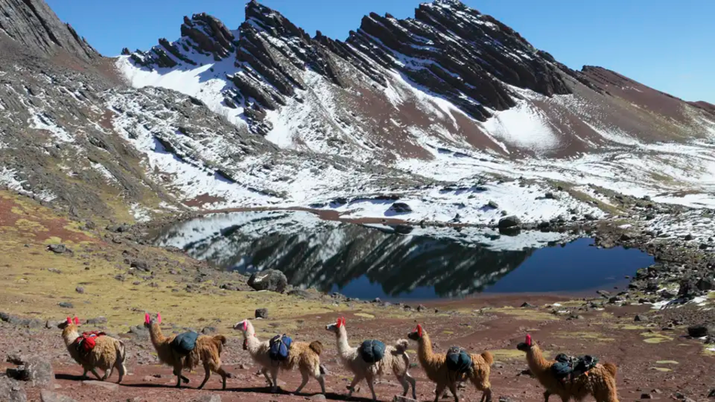 Trekkingreise von Cusco bis in die Cordillera VilcanotaBunt gestreifte Sedimenthügel, schneebedeckte Anden-Gipfel, die sich im türkisfarbenen Wasser der Gletscherseen spiegeln, geheimnisvolle Inkastätten inmitten der Bergwelt. Lama- und Alpakahirten begleiten uns auf dem mehrtägigen Trekking auf versteckten Inkapfaden durch das Gebirge der Cordillera Vilcanota – den 6.384 m hohen Apu Ausangate haben wir immer im Blick. Bei klarem Wetter ist er sogar von der Inkahauptstadt Cusco aus zu sehen. Sein Gipfel gilt für die Andenvölker als "Apu", als heilige Berggottheit, als Beschützer der Bewohner und ihrer Tiere. Unsere "Andenkamele" sind unsere treuen Weggefährten und übernehmen den Gepäcktransport. Die ersten Sonnenstrahlen begrüßen uns und lassen den Vinicunca in seiner Farbenpracht noch intensiver leuchten. Der Vinicunca wird daher gerne "Rainbow Mountain" – der Regenbogenberg – genannt. Dieser spektakuläre Fotospot ist aber nur einer der vielen Highlights auf dem Apu Ausangate Lodge-Trekking. Wir überqueren zu Fuß Pässe mit über 4.500 m und genießen atemberaubende Weitblicke über die Anden. Während des Trekkings sind die Lodges der Organisation "Camino del Apu" unser komfortables Zuhause. Dabei tragen wir dazu bei Arbeits- und Ausbildungsplätze zu sichern und Landflucht zu verhindern, denn die Betreiber der Unterkünfte sind die Dorfbewohner selbst. Freuen Sie sich auf ein Trekking mit einem richtigen Dach über dem Kopf, einer heißen Dusche im Zimmer, bester Verpflegung durch lokale Köche und intensiven Begegnungen mit Hirten und Dorfbewohnern in wunderschöner Natur!