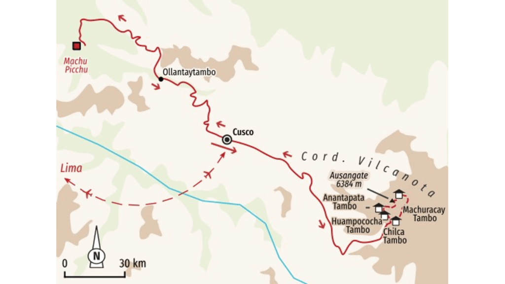 <Wir fliegen über die Anden nach Cusco (3.416 m). Im historischen Zentrum der alten Inkahauptstadt schnuppern wir zum ersten Mal Höhenluft. Um die Höhenanpassung zu erleichtern, fahren wir zum Übernachten ins Urubamba-Tal (2.850 m), auch "Valle Sagrado" oder "Heiliges Tal der Inka" genannt. Der Nachmittag steht zur freien Verfügung. Wir können im Hotel entspannen oder einen ersten kurzen Spaziergang zwischen den Inkamauern im historischen Kern Ollantaytambos unternehmen. -