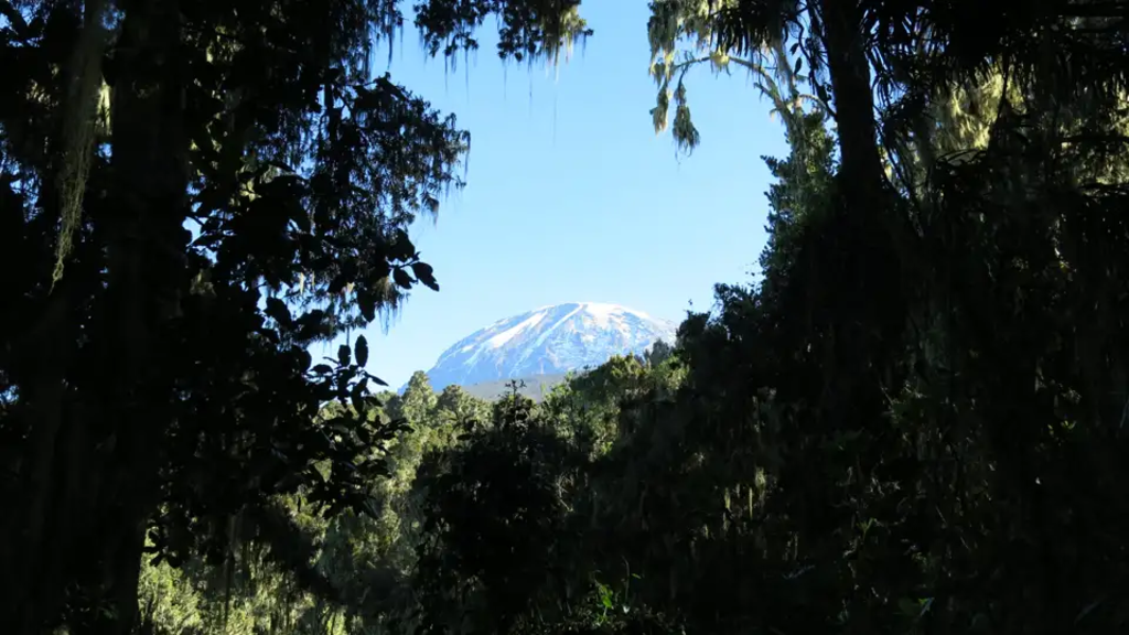 <Früh fahren wir nach Machame, dem Ausgangspunkt für die Kilimanjaro-Besteigung. Nach der Meldung am Gate (1.790 m) steigen wir mäßig auf einem breiten Waldweg an, der bald in einen Pfad übergeht. Durch feuchten Regenwald geht es weiter. Zum Teil sind große Stufen und steile Passagen zu überwinden. Der Weg führt ständig über Wurzelwerk, durch üppigen Regenwald mit Kilimanjaro-Springkraut, Farn und vielen anderen Pflanzen. Je nach Wegbeschaffenheit, kann es sein, dass unsere Füße auch mal im Schlamm einsinken, Gamaschen sind hier gegebenenfalls hilfreich. Wir erreichen das Machame Camp (2.835 m), wo der Regenwald in die Hochmoorlandschaften übergeht. -