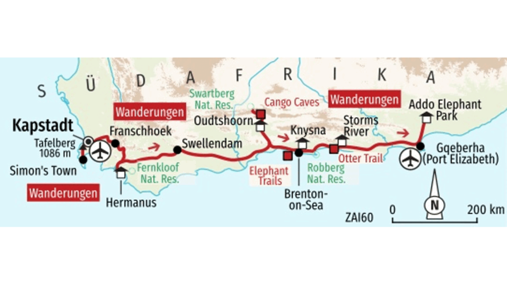 Selbstfahrer-Wanderreise entlang der Garden Route von A World in One Country! Erleben Sie die Vielfalt Südafrikas in Ihrem Tempo und auf eigene Faust. Vom Tafelberg aus genießen Sie nach dem Aufstieg den Blick über ganz Kapstadt hinaus in die unendliche Weite. Entlang der Garden Route entdecken Sie Südafrikas gesamte Bandbreite: schroffe Klippen, verträumte Sandstrände, verwilderte Wälder und ein scheinbar unendlicher Reichtum an Pflanzen- und Tierarten. Mit Gänsehaut am ganzen Körper stehen Sie schließlich am Ende der Reise vor den riesigen Dickhäutern im Addo Elephant Nationalpark. Nun begreifen Sie, warum man Südafrika nachsagt, das schönste Ende der Welt zu sein...Zum Reisebericht: Südafrika – Wildlife, Wüste, Abenteuer | Hauser Exkursionen (hauser-exkursionen.de)