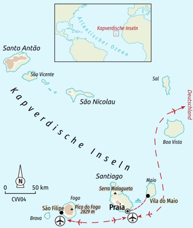 Wanderreise über Santiago, Fogo und die unberührte Insel MaioMaio – die südliche Insel des kapverdischen Archipels – ist noch weitgehend touristisch unberührt. Weite Strände, kleine verzauberte Ortschaften und eine Geschichte, die von Seefahrern und Salzabbau erzählt, beeindrucken die Besucher. Entdecken Sie zuerst die Insel Santiago auf Wanderungen rund um Rui Vaz und besuchen Sie die Rabelados, eine religiöse Gemeinschaft. Fogo, die Feuerinsel, mit Vulkanbesteigungen, Abendessen in familiären Unterkünften und einer Weinprobe mit feurigem Fogowein locken danach. Am Ende dieser abwechslungsreichen Südinselreise entspannen Sie am palmengesäumten Strand von Tarrafal, mit der Möglichkeit zu schnorcheln.Diese Reise führen wir in Kooperation mit Reisen mit Sinnen durch.