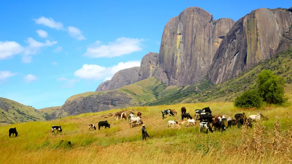 <Nach dem Frühstück erkunden wir Antsirabé, die ehemalige französische Kurstadt. Dann fahren wir nach Betafo, von wo wir ins Dorf Fiadanana wandern. Unterwegs erleben wir den ländlichen Alltag zwischen den lokalen Bauern und Handwerksbetrieben. Nach dem Picknick erreichen wir die Unterkunft und haben Zeit, das Dorf zu erkunden. Abends genießen wir ein madagassische Spezialitäten. -
