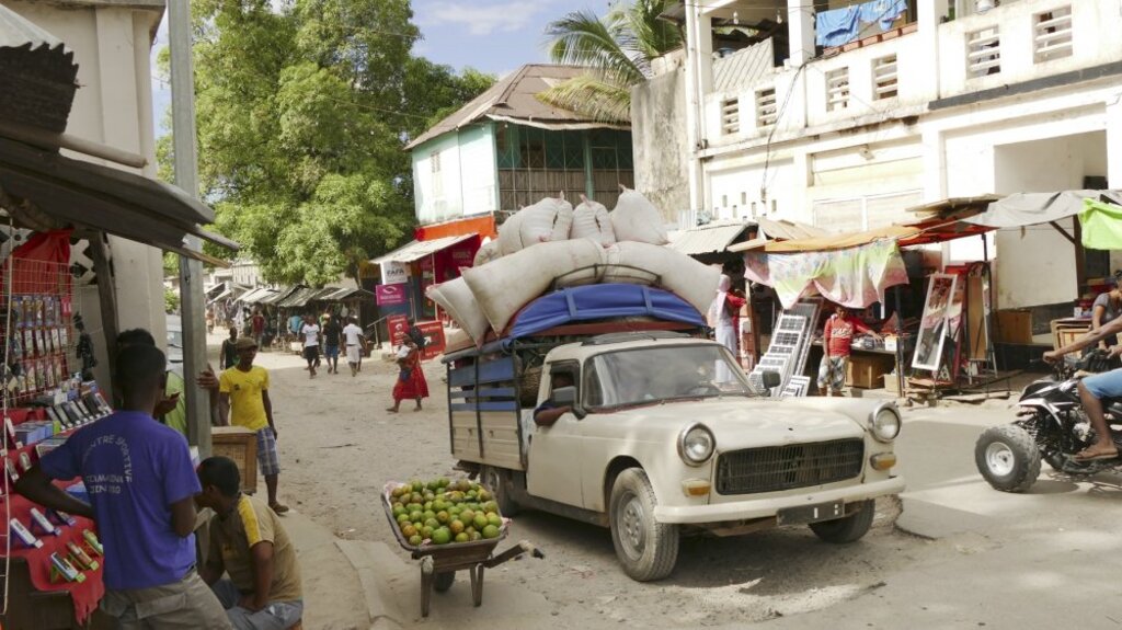 Heute fahren wir nach Miandrivazo. Die Strecke ist abwechslungsreich. Wir fahren durch das Hochland, in dem leuchtend grüne Reisfelder und -terassen zu sehen sind. Immer wieder fahren wir durch kleine traditionelle Orte und sehen am Straßenrand Marktstände, an denen das regionale Obst und Gemüse angeboten wird. Je weiter wir in den Westen gelangen, desto trockener wird das Gebiet – weite Savannen und Grassteppen verlaufen entlang der Straße.
