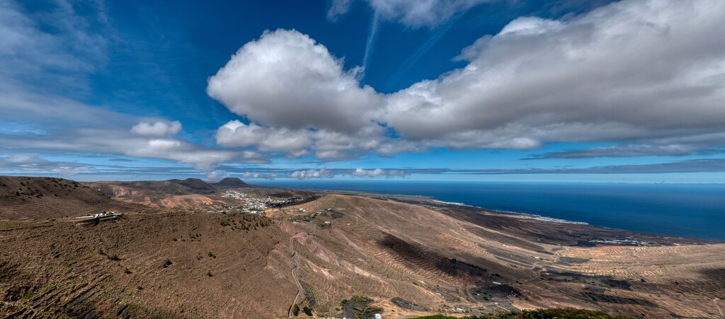 <Yé ist einer der schönsten Orte auf Lanzarote und liegt im Tal der 1.000 Palmen. Hier starten wir unsere Wanderung, die uns vom Dorf aus auf den Monte Corona und weiter nach Guanate führt. Beeindruckend wogt der Atlantik unter uns und speit die gewaltigen Wellen ans Land. Wir genießen diesen Ausblick nun über eine längere Wegstrecke, bis wir schließlich die Abbruchkante verlassen und über den Vulkan Los Helechos nach Maguez absteigen.