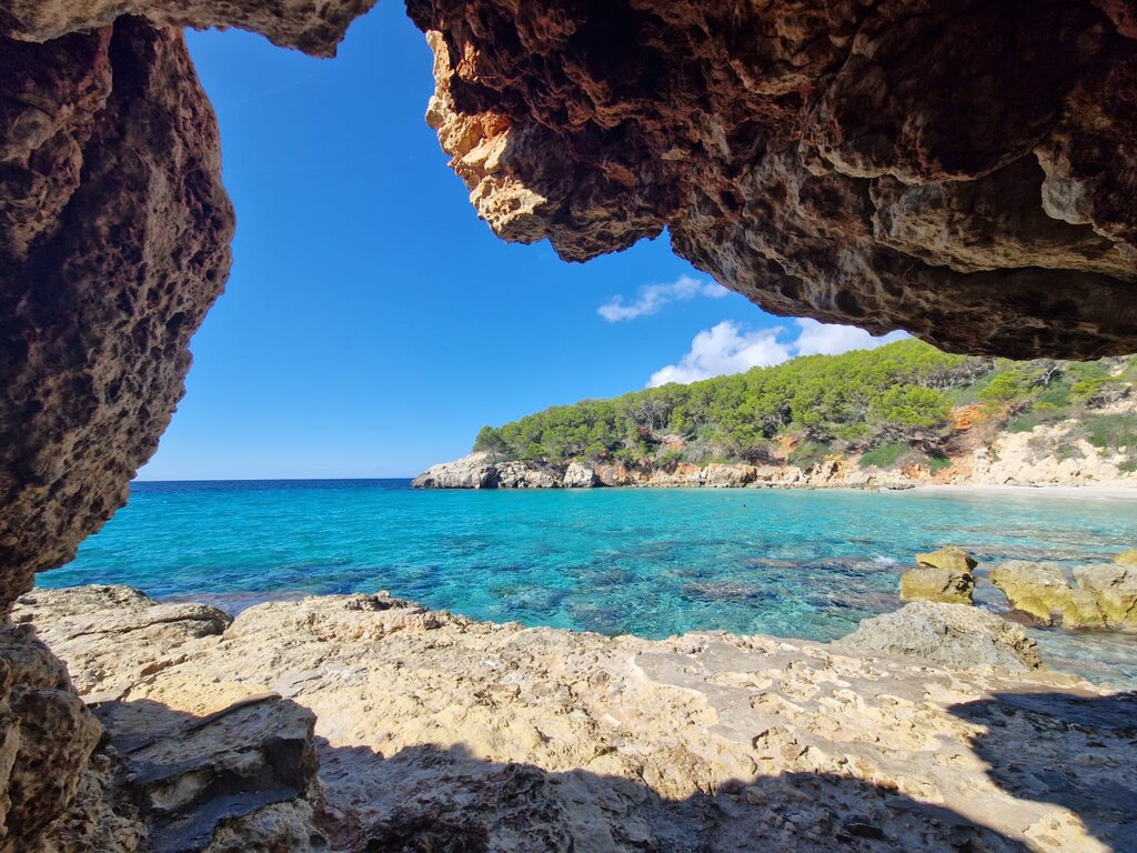 <Von unserem Hotel fahren wir zur Cala Galdana, wo unsere heutige Wanderung beginnt. Der Pfad führt uns entlang der eindrucksvollen Südküste, vorbei an Kalkfelsen, Pinien und dem glitzernden Meer. Immer wieder öffnen sich weite Ausblicke auf weiße Sandstrände und das kristallklare Wasser, das in unzähligen Blautönen schimmert. Schließlich erreichen wir die abgelegene Bucht Cala Mitjana – ein idealer Ort, um kurz innezuhalten und die Ruhe dieser Küstenlandschaft zu genießen.