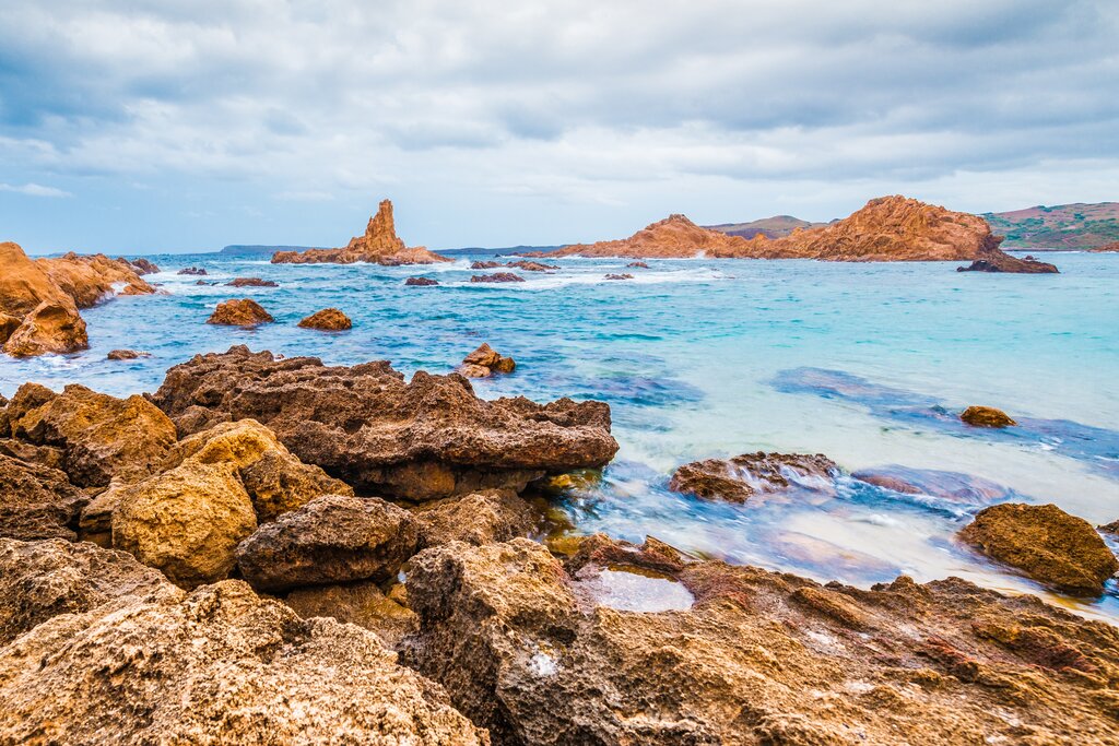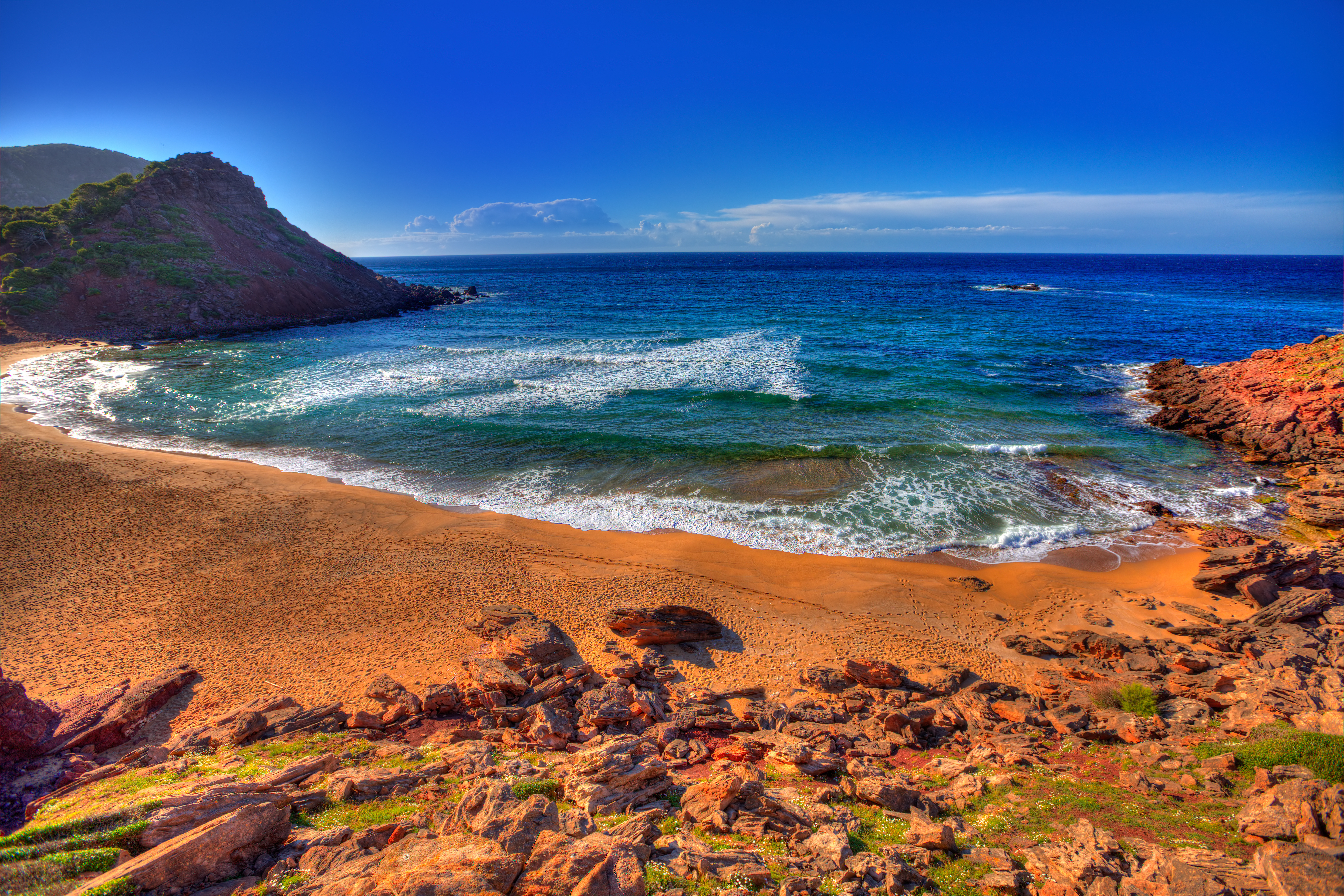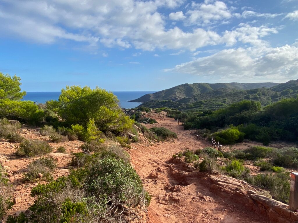 <Unsere heutige Wanderung beginnt in der „roten Bucht“, der Cala Pilar, die für ihre kupferfarbenen Felsen bekannt ist. Auf dem Camí de Cavalls folgen wir alten Küstenpfaden und erreichen ein fruchtbares Tal, das für seine Käseproduktion berühmt ist – hier leuchten im Winter die Wiesen saftig grün. Der Weg führt weiter durch ursprüngliche Landschaften bis zur Bucht von Algaiarens. Am hellen Sandstrand bietet sich die Gelegenheit, die Wanderschuhe auszuziehen und ein erfrischendes Bad im Meer zu nehmen.