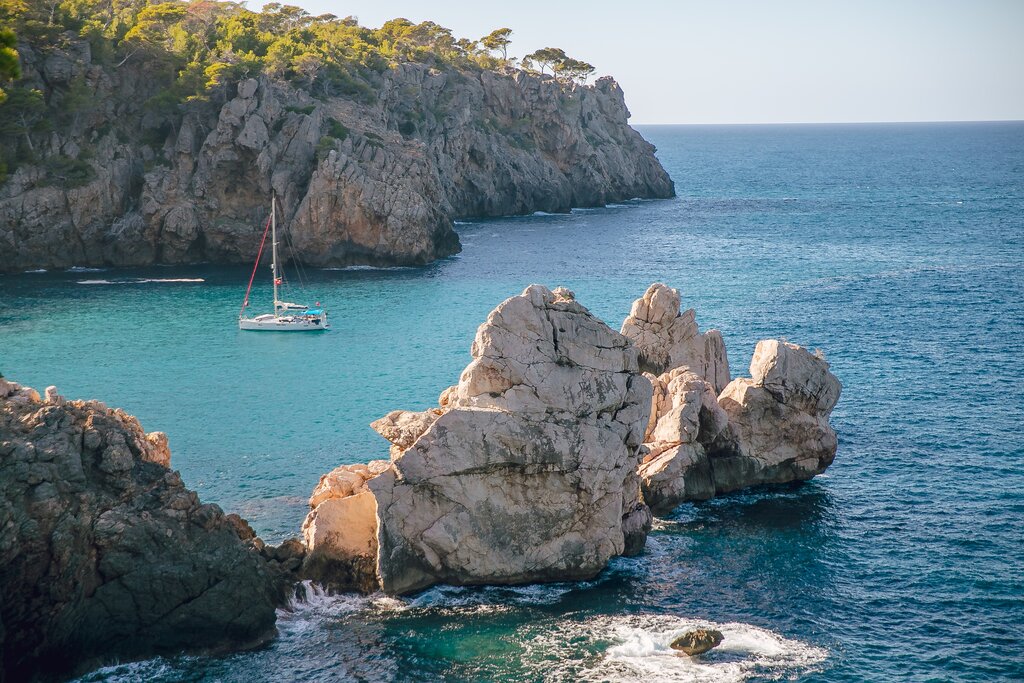 Eine kurze Busfahrt bringt uns in den äußersten Westen Mallorcas, nach Port d’Andratx. Von hier folgen wir einem Küstenpfad durch lichten Pinienwald, begleitet vom Rauschen des Meeres und dem Duft von Harz und Salzluft. Schritt für Schritt nähern wir uns dem kleinen Fischerdorf Sant Elmo, das malerisch am Wasser liegt. Vor uns erhebt sich Sa Dragonera – die geheimnisvolle Dracheninsel, Heimat unzähliger Eidechsen und Symbol der wilden Schönheit Mallorcas.