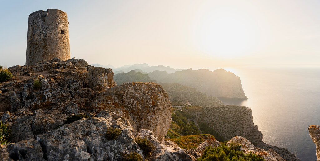 <Heute führt uns der Weg an die Nordküste, zur malerischen Bucht von Alcúdia. Unsere Wanderung geht hinauf zum Gipfel der Atalaya de Alcúdia (444 m), von wo sich ein beeindruckender Ausblick über die gesamte Ostseite der Insel eröffnet. Vor uns glitzert das endlose Meer in der Sonne, während sich im Hintergrund die majestätische Bergwelt der Tramuntana erstreckt – ein unvergesslicher Moment mitten in Mallorcas Naturparadies.