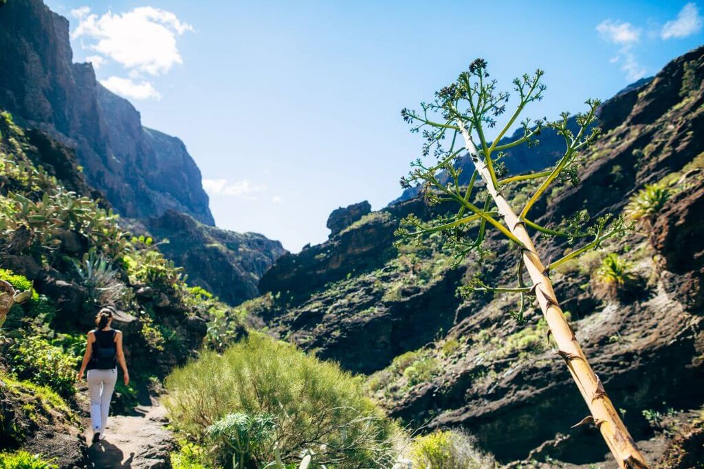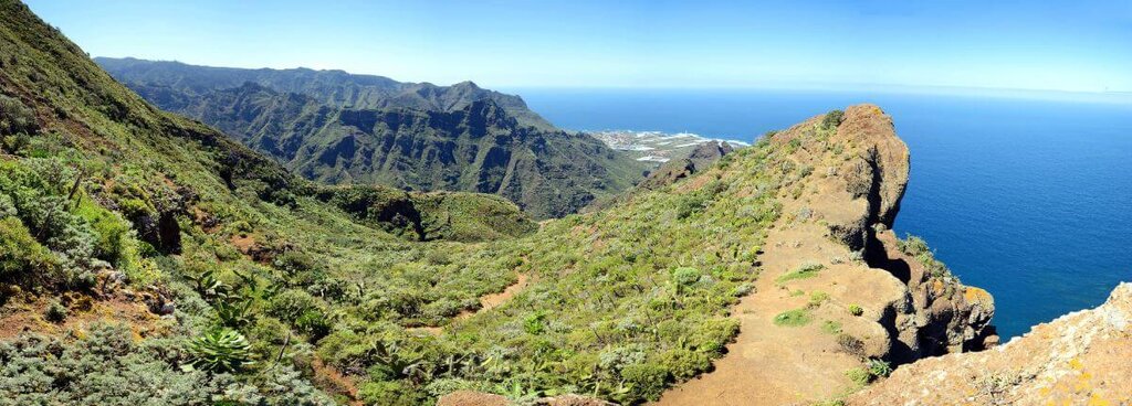 <Eine wunderschöne Kammwanderung im Tenogebirge erwartet uns: Von Santiago del Teide wandern wir mit herrlichen Aussichten zum Teide und zu den Steilwänden des Tenogebirges bis zu einem Aussichtspunkt oberhalb von Masca. Der Weg führt uns durch Sukkulentenvegetation am Hauptkamm entlang. Wir wandern weiter durch den Lorbeerwald, der ursprünglichen Vegetation Teneriffas. Der letzte Abstieg führt uns durch den lichten Agavenwald hinab ins kleine Bergdorf Masca- abwechslungsreicher kann eine Wanderung kaum sein! -