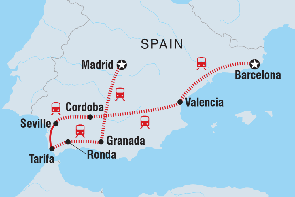 Erlebe ein 15-tägiges Abenteuer durch die Highlights Spaniens. Beginne im farbenfrohen Madrid und erkunde die wunderschöne Region Andalusien. Besuche die Städte, die Spaniens vielfältige Geschichte und Kultur widerspiegeln, sieh dir eine feurige Flamenco-Vorstellung in Sevilla an und schlendere durch das geheimnisvolle Labyrinth der Gassen im alten arabischen Viertel von Albayzin. Folge deiner Nase in einer Tapas-Bar mit einem Einheimischen an deiner Seite und streife durch Gaudis Werk in Barcelona - wenn du mit einer kleinen Gruppe Gleichgesinnter reist, kannst du Spanien erkunden, ohne dich um die kleinsten Details kümmern zu müssen.