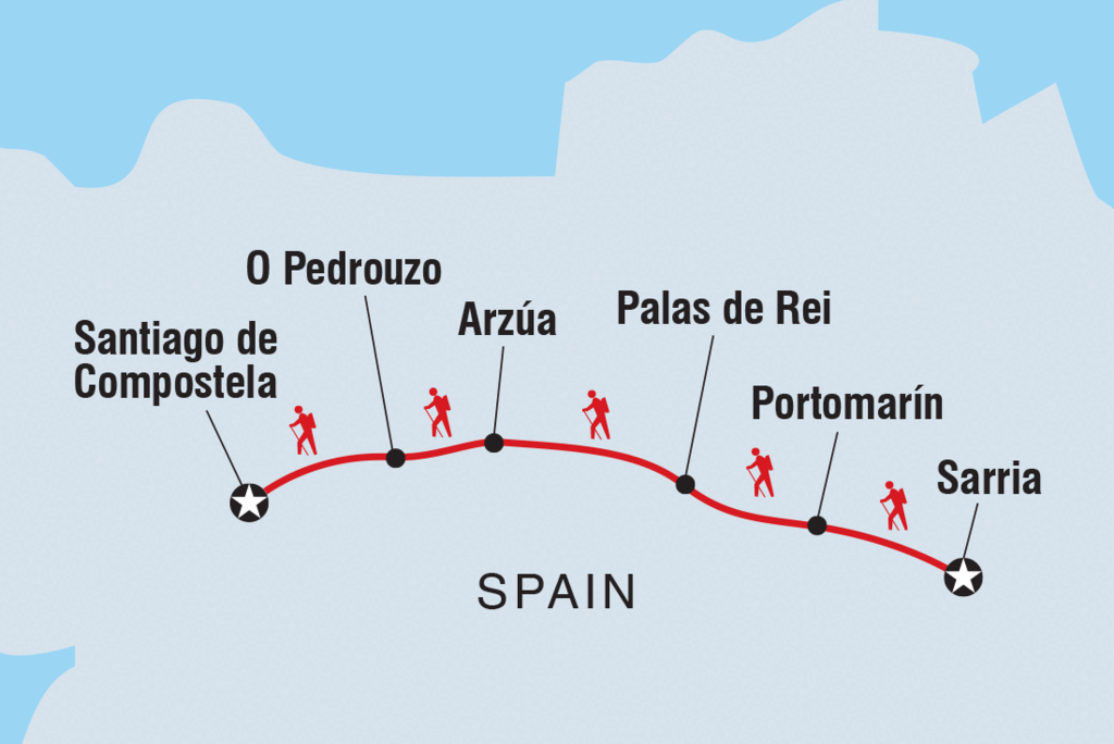 <Bienvenidos! Willkommen in Spanien. Dein Abenteuer beginnt in Sarria in der Region Galicien im Nordwesten Spaniens. Diese autonome Ecke des Landes hat ihre eigene Sprache, Küche und Kultur, die sich vom Rest des Landes unterscheidet, und ist die Heimat von Santiago de Compostela - dem Ziel des Jakobsweges. In der nächsten Woche wirst du die letzten 100 km dieses weltberühmten Pilgerweges zurücklegen. Heute Abend findet um 18 Uhr ein Begrüßungstreffen statt, bei dem du deinen örtlichen Reiseleiter und eine kleine Gruppe von Mitreisenden kennenlernst. Danach holst du deinen "Pilgerpass" ab und machst dich vielleicht auf den Weg zu einem lokalen Restaurant, um einen ersten Einblick in die aufregende Welt der galicischen Küche zu bekommen.