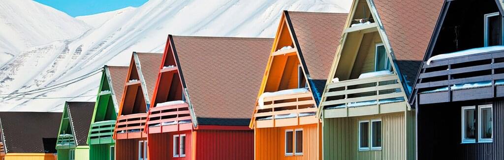<Nach dem Frühstück wird die Gruppe zum Flughafen gebracht und geht an Bord unseres privaten Charterflugs nach Longyearbyen, der größten Siedlung Spitzbergens. Beim Einschiffen am Nachmittag genießt du einen großartigen Blick auf die bergige Landschaft, die als Kulisse für die Stadt am Meer dient. -