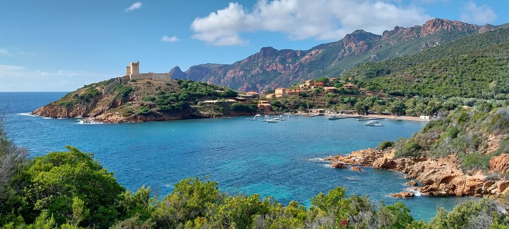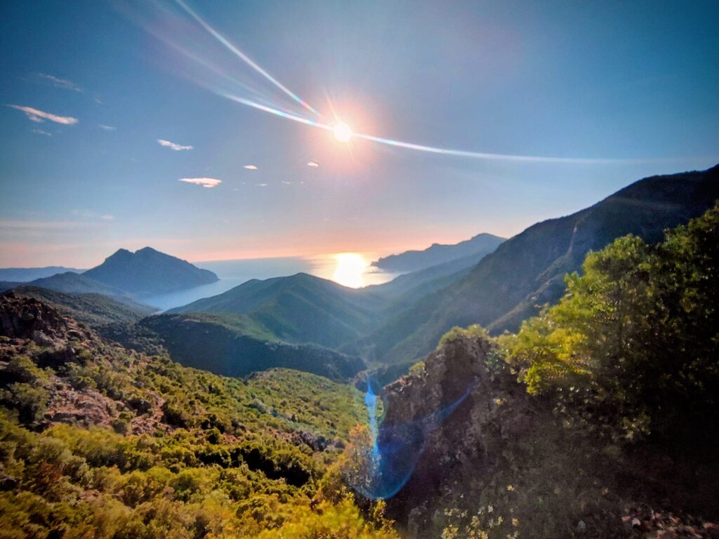<Der Tag beginnt mit einem steilen Abstieg, bevor der Weg sanfter wird und wir durch die aromatisch duftende Macchia wandern. Bald erreichen wir Girolata, ein abgelegenes Fischerdorf in einer geschützten Bucht, das nur zu Fuß oder per Boot zugänglich ist und mit seiner ruhigen Lage sofort verzaubert. Nach einer Pause im Ort folgen wir dem alten Postbotenweg, der uns mit weiten Blicken entlang der Küste begleitet. In der Bucht von Tuara lädt das klare Meer zu einem erfrischenden Bad ein – ein wunderbarer Moment der Entspannung.