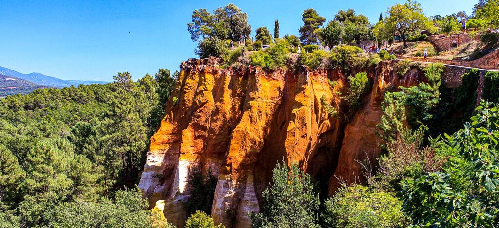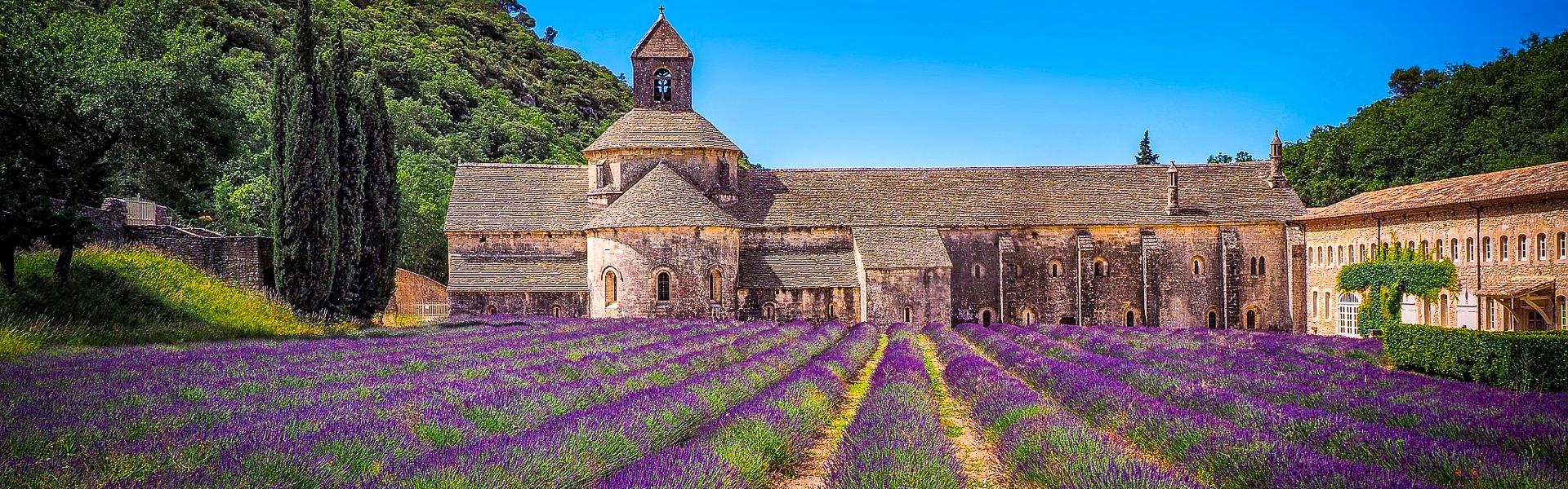 <Heute fährst du durch die malerischen Straßen der Provence. Schau aus dem Fenster und genieße den Anblick der kleinen Dörfer und der Landschaft, bevor du in Roussillon ankommst und die Besichtigung der berühmten Ockersteinbrüche startest. Vom strahlenden Sonnengelb bis hin zum leuchtenden Feuerrot erstreckt sich das gesamte Farbspektrum warmer Töne. Besonders im Kontrast zur grünen Vegetation und im Spiel von Licht und Schatten kommen die Vielfalt und Intensität der Farbtöne gut zur Geltung. Traditionell dient Ocker übrigens als Pigment zum Färben von Gefäßen und Gebäuden. Heute sind die Steinbrüche stillgelegt, doch vor gut hundert Jahren, zur Blütezeit der Ockerindustrie, wurden bis zu 40.000 Tonnen Ocker pro Jahr abgebaut. Wer an die Provence denkt, hat vor allem eines im Sinn: Lavendel. Die Blütezeit des Lavendels erstreckt sich von Mitte Juni bis Mitte August, doch auch in den restlichen Monaten dreht sich hier alles um das wohlriechende Kraut. In Gordes besuchst du eine der drei provenzalischen Schwestern, die Abtei Notre-Dame de Senanque. Die anderen beiden Schwestern sind die Abtei Le Thoronet und die Abbaye de Silvacane. Hier leben immer noch Mönche, die Honig produzieren und Lavendel anbauen. Der Zisterzienserorden folgt einer typischen asketischen Strenge, die nicht nur in ihren Klosterregeln, sondern auch in der schmucklosen und schlichten Architektur konsequent umgesetzt wird.