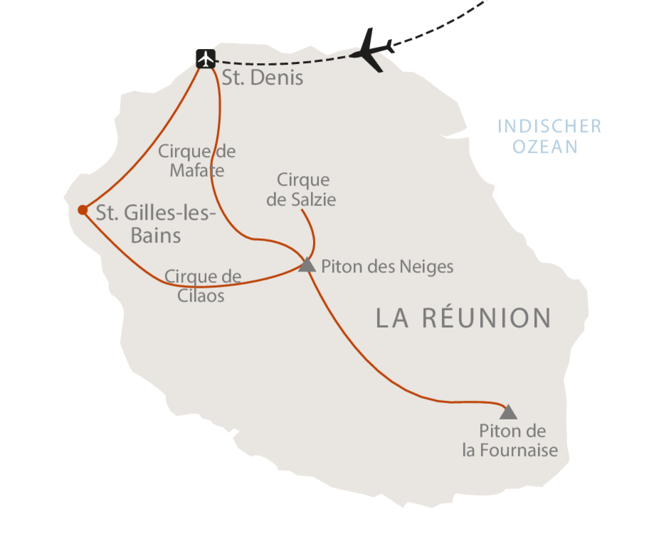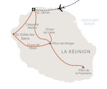 Im Inneren der Tropeninsel La Réunion verbirgt sich ein wahres alpines Abenteuer: atemberaubende Kraterwände, immergrüne Vegetation, spektakuläre Schluchten, sanfte Hochebenen und bizarre Gipfel prägen das Bild in den drei längst erloschenen Vulkankesseln Cirque de Mafate, Cirque de Salazie und Cirque de Cilaos. Auf dem berühmten Weitwanderweg GR1 umrunden wir das gesamte Massiv des Piton des Neiges, auf dessen 3.070 m hohen Gipfel wir einen unvergesslichen Sonnenaufgang erleben. Ganz gegensätzlich präsentiert sich die "Mondlandschaft" um den immer noch aktiven Vulkan Piton de la Fournaise im Südosten der Insel. Feine Sandstrände laden am Reiseende zum Baden und Entspannen ein.