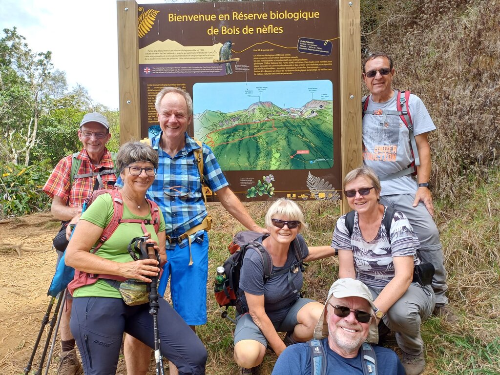<Von La Nouvelle geht es in ständigem Auf und Ab zur Hochebene von Plaine aux Sables, bevor wir steil ins Tal des Rivière des Galets absteigen. In diesem idyllischen Flusstal erreichen wir die „Trois Roches“, einen schönen Rastplatz am Ufer des tief eingeschnittenen Flusses. Weiter geht es im Schatten mächtiger Kraterwände. Nach einem letzten steilen Aufstieg erreichen wir das Hochplateau von Marla und schließen über Maison Laclos den Kreis zurück nach La Nouvelle.