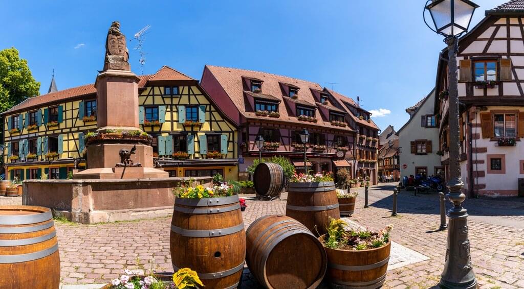 <Unsere heutige Wandertour startet direkt vom Hotel aus und führt durch die malerische Altstadt von Ribeauvillé, die durch Fachwerkhäuser und zahlreiche Gebäude aus dem 16. und 17. Jahrhundert geprägt ist.
