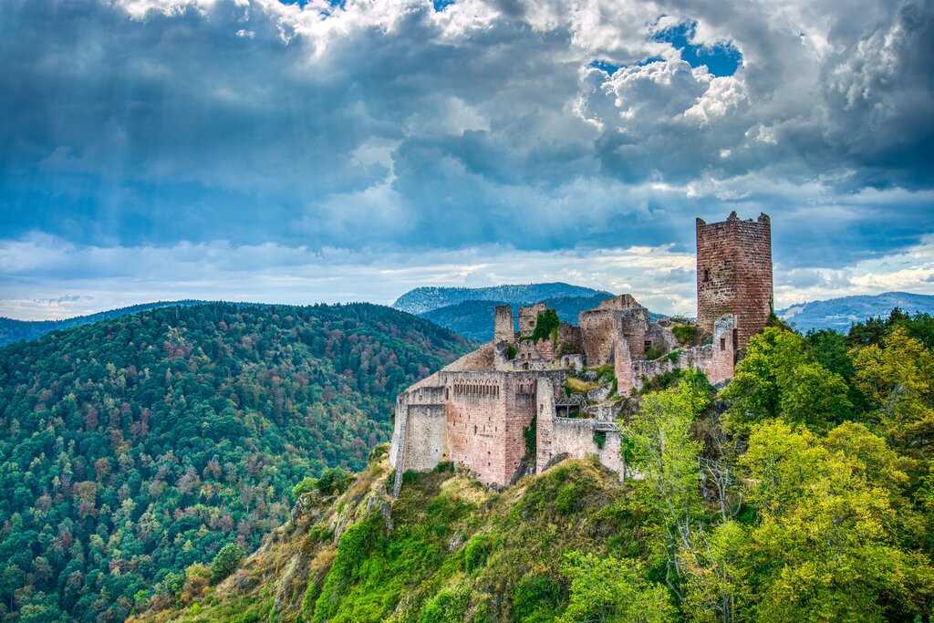 Wir wandern hinauf zu den drei Burgruinen Saint-Ulrich, Giersberg und Haut-Ribeaupierre, die den Ort auf über 500 Metern überragen. Wir besichtigen die größte und am besten erhaltene Ruine, Saint-Ulrich aus Mitte des 13. Jahrhunderts, und genießen von dem Felsvorsprung eine grandiose Aussicht auf die Stadt und die Umgebung.