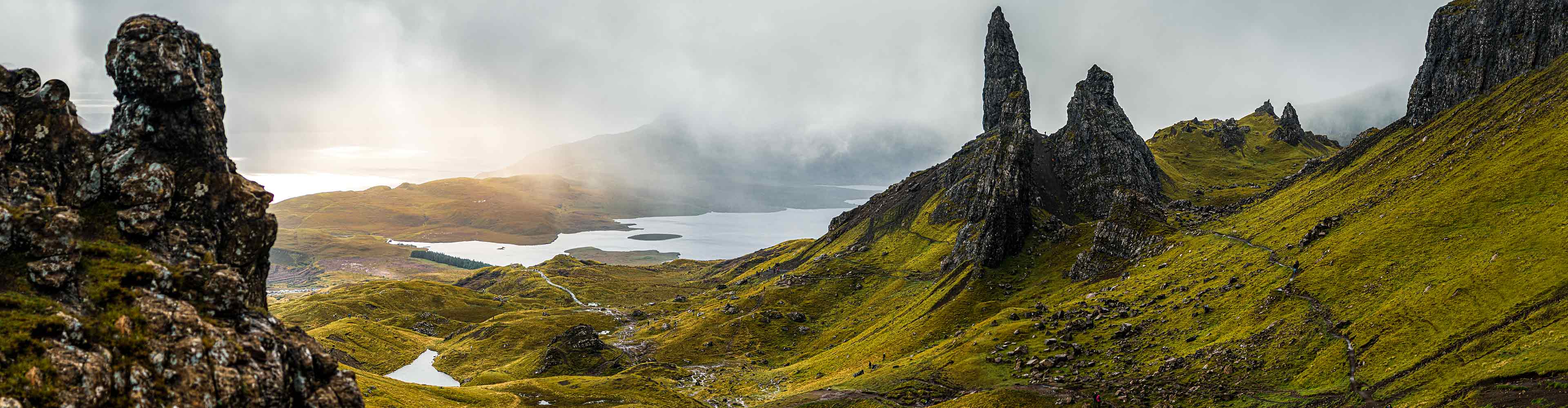 <Begleite deinen Guide auf einer kurzen Morgenwanderung und genieße die wunderschöne Landschaft. Wenn du Glück hast, kannst du vielleicht sogar einige der einheimischen Wildtiere von Skye sehen, wie zum Beispiel Otter oder Robben. Nach der Wanderung erkundest du auf einer privaten Bustour einige der berühmtesten und bekanntesten Landschaften von Skye, während du die Trotternish Peninsula umrundest. Die Trotternish-Halbinsel ist bekannt für ihre dramatischen Landschaften, darunter der Quiraing mit seinen einzigartigen geologischen Formationen, die dich in Staunen versetzen werden. Die hoch aufragende Spitze des Old Man of Storr und der Kilt Rock, eine dramatische Meeresklippe mit einer Kaskade von spektakulären Wasserfällen. Deine Bustour führt dich über kurvenreiche Küstenstraßen und bietet dir die Möglichkeit, an diesen bemerkenswerten Sehenswürdigkeiten zu halten und unterwegs eine lokale Galerie oder ein Museum zu besuchen. Wenn es die Zeit erlaubt, kannst du auch Dunvegan Castle besuchen (Eintrittsgelder nicht inbegriffen), bevor du am späten Nachmittag zu deiner Unterkunft zurückkehrst.