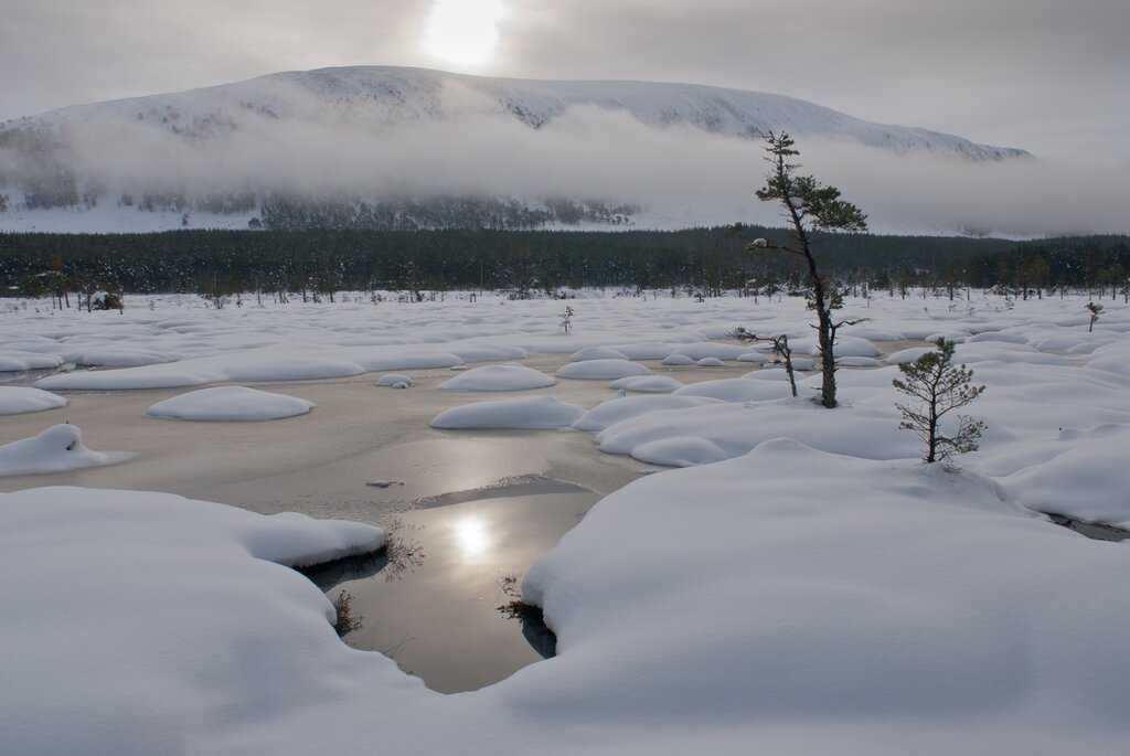 <Es erwartet uns eine klassische, Schottland-typische Wanderung durch einen märchenhaften Kiefernwald am Fuße des Loch Morlich. In einem schmalen, steilen Tal schimmert ein Bergsee grünblau. Unterwegs können wir uns in einer Bothy, einer unbewirteten Berghütte, am offenem Feuer kurz ausruhen und aufwärmen. Ein guter Pfad führt uns stetig den Berg hinauf und vom Gipfel haben wir beste Aussichten auf das Glenmore-Tal und die Cairngorms. Zurück im Hotel erwartet uns ein Dinner, Musik und das schottische Hogmanay Fest. Wir begrüßen das neue Jahr mit einem Glas Whisky. -
