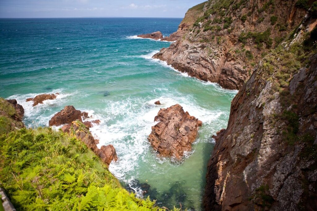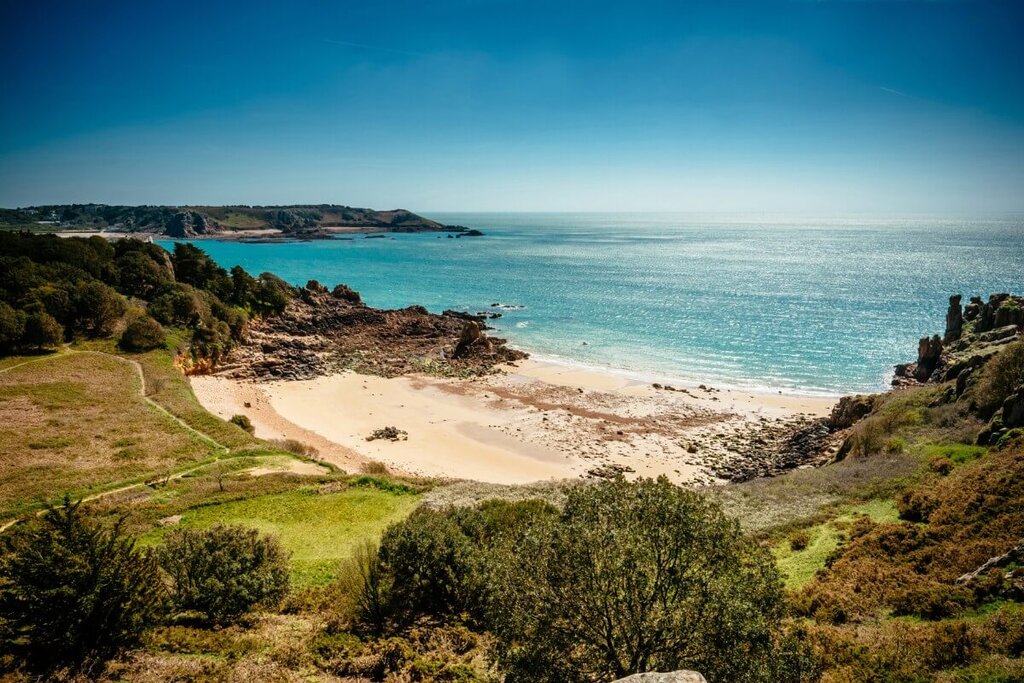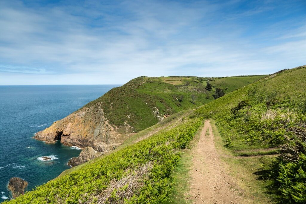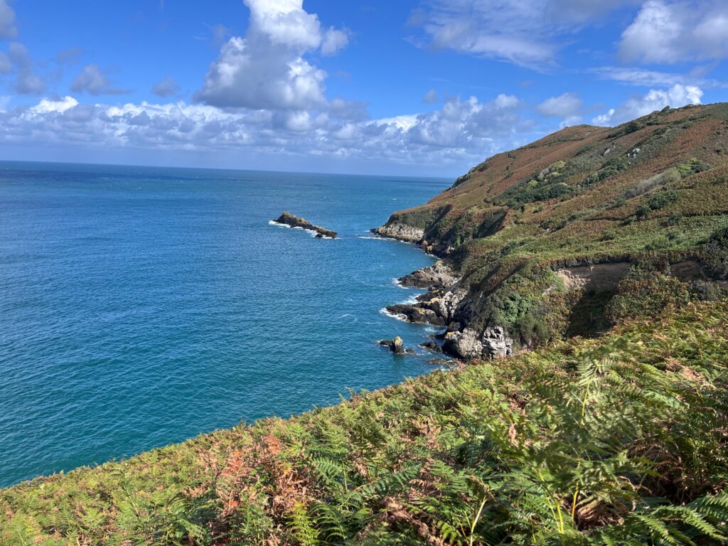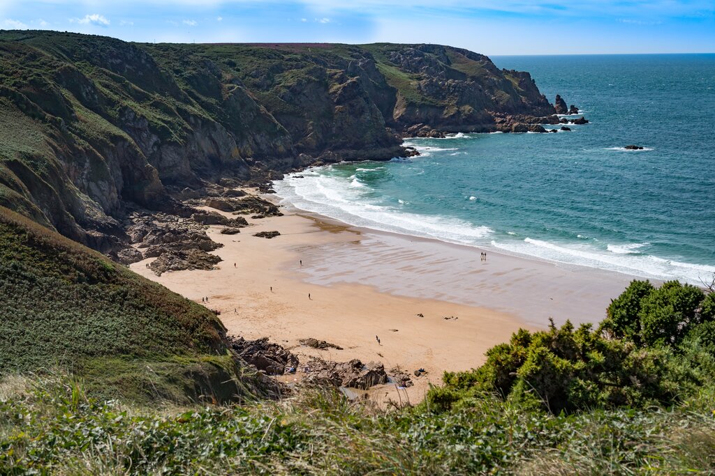 <Heute wandern wir von der nördlichen Spitze des langen Sandstrandes von St. Ouen’s Bay bis nach Grève de Lecq. Bei klarem Wetter eröffnet sich ein fantastischer Blick über das Meer bis zu den Inseln Sark und Guernsey. Unser Weg führt über die Küstenklippen und entlang des von Farn bewachsenen Küstenpfads nach Plémont – vorbei an stillen Zeugen der Geschichte, den Überresten deutscher Stellungen aus dem Zweiten Weltkrieg. Weiter geht es nach Grève de Lecq, wo wir eine Genusspause am Strand einlegen oder einen der Pubs an der alten Mühle besuchen können.