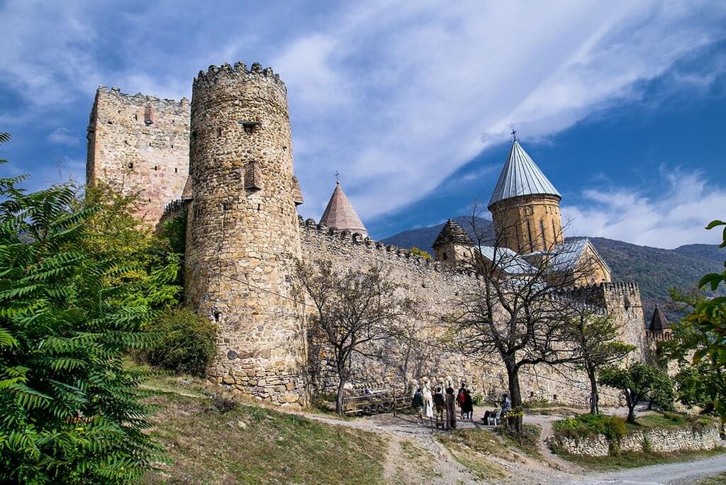 <Begib dich auf eine Tour durch das Pankisi-Tal und lerne die einzigartige Kultur der Kisten und ihre ländliche Lebensweise bei einer Wanderung durch mehrere Dörfer kennen. Du besuchst die St.-Georgs-Kirche in Jokolo, die alte Moschee in Duisi und das ethnografische Museum. Zum Mittagessen probierst du Chaabilgish (tschetschenische Khachapuri mit Kürbisfüllung) und andere traditionelle kistische Gerichte. Fahre weiter nach Gudauri und halte unterwegs an der Festungsanlage Ananuri an. Diese Ansammlung von Kirchen und Türmen liegt am türkisblauen Aragvi-Fluss und bietet einen atemberaubenden Anblick. Du wirst deine Kamera nicht vergessen wollen!