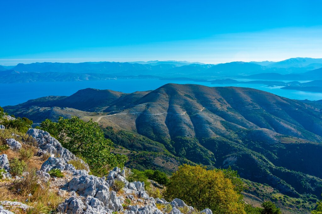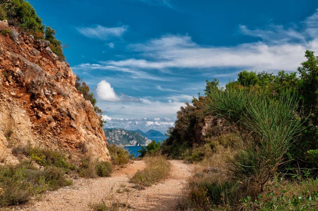 <Vom Küstenort Acharavi steigen wir auf alten Wegen hinauf ins Pantokratorgebirge. Durch ursprüngliche Vegetation und begleitet von weiten Ausblicken auf Meer und Insel wandern wir bis ins Dorf Lafki. Ein aussichtsreicher Höhenweg führt weiter durch Wälder und über fruchtbare Hochebenen. Unser Ziel ist das geheimnisvolle, längst verlassene Dorf Perithia – ein Ort voller Geschichte, verborgen im Herzen des Gebirges.