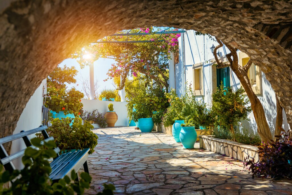 <Unsere Wanderung beginnt im traditionellen Bergdorf Liapades, dessen Steinhäuser und enge Gassen vom ursprünglichen Leben auf Korfu erzählen. Von hier aus folgen wir schattigen Pfaden durch uralte Olivenhaine und Kermeseichenwälder, immer begleitet vom Glitzern des Ionischen Meeres. Unterwegs laden kleine, versteckte Buchten zum Verweilen und Träumen ein – wahre Paradiese, die nur zu Fuß erreichbar sind. Zurück im Dorf genießen wir das mediterrane Flair auf dem malerischen Dorfplatz von Liapades.