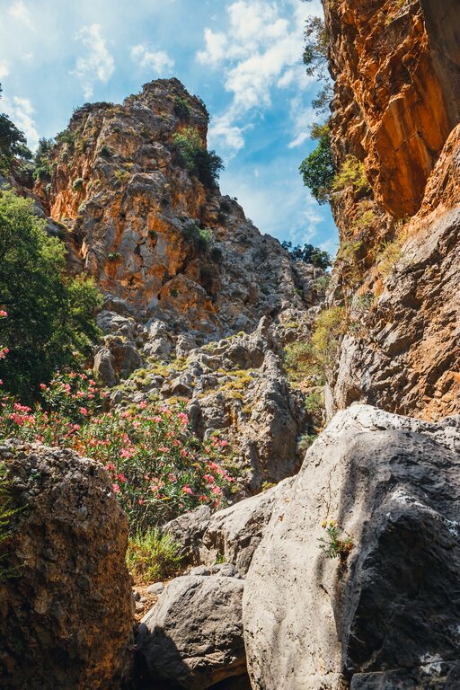 <Bevor wir unsere Wanderung durch die wilde, von steilen Felswänden umrahmte Schlucht der Götter beginnen, besuchen wir die Kirche Panagia Kera. Ihre farbenprächtigen byzantinischen Fresken aus dem 13. Jahrhundert zählen zu den schönsten der Insel und lassen die Vergangenheit lebendig werden. Anschließend erkunden wir die antike Stadt Lato, die einst ein wichtiges Zentrum Kretas war. Unsere Wanderung endet an den gewaltigen Stadtmauern, bevor wir mit dem Bus ins malerische Dorf Kritsa fahren. Dort genießen wir unser Mittagessen in einer Umgebung, die schon als Filmkulisse diente.