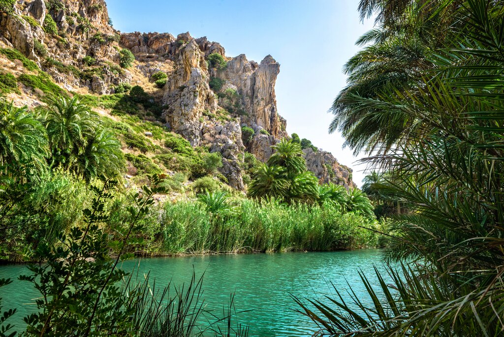 <Nach der spektakulären Anfahrt durch die Kourtaliotiko-Schlucht starten wir unsere Wanderung an den Quellen des Megalopotamos, der uns bis zum Meer begleitet. Am Palmenstrand von Preveli erfrischen wir uns bei einem Bad, bevor uns ein besonderes Erlebnis erwartet: Mit einem kleinen Boot gleiten wir rund 45 Minuten entlang der wilden Südküste. Schroffe Felsen, einsame Buchten und das endlose Blau des Libyschen Meeres begleiten uns auf dem Weg nach Plakias, wo wir den Tag ausklingen lassen.
